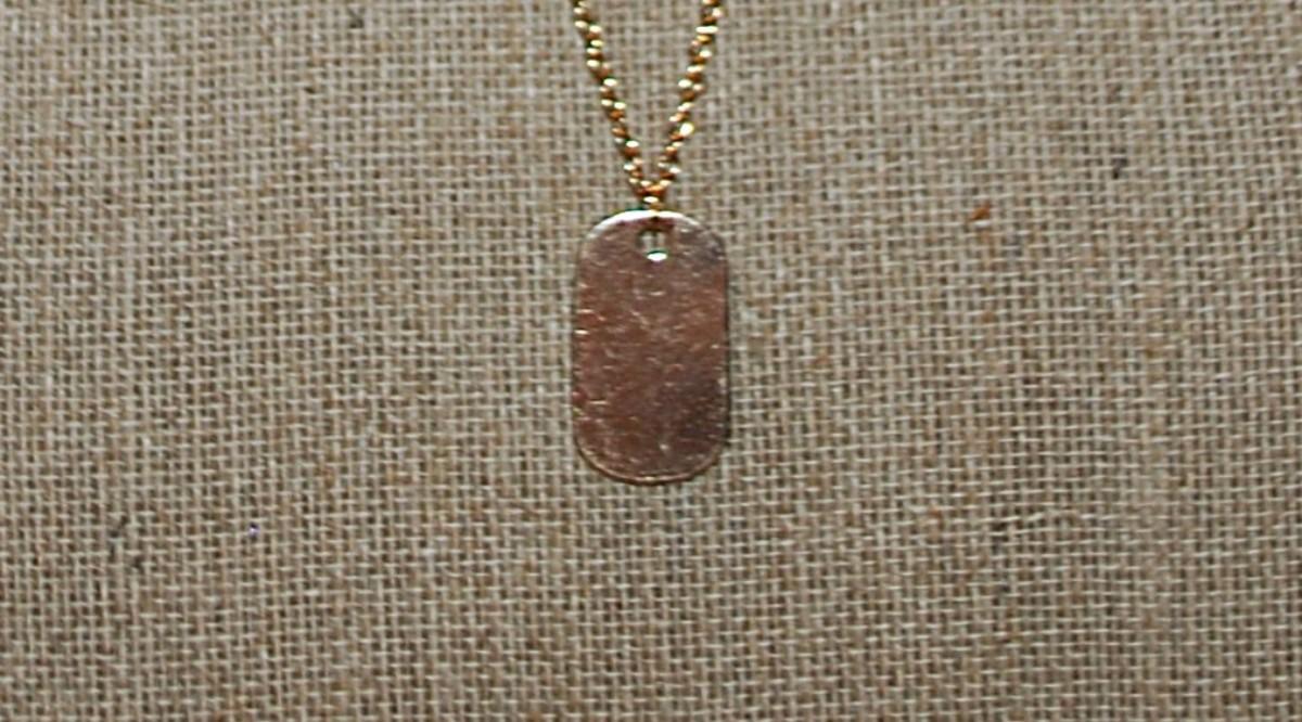 Gold Tone Shiny Oval TAG NECKLACE with Thin Gold Colored Necklace Chain and Lobster Clasp 22" L
