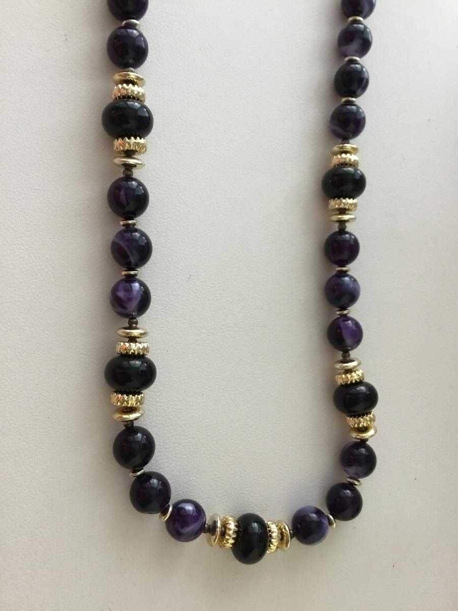 Gold tone spacers purple beaded fashion necklace