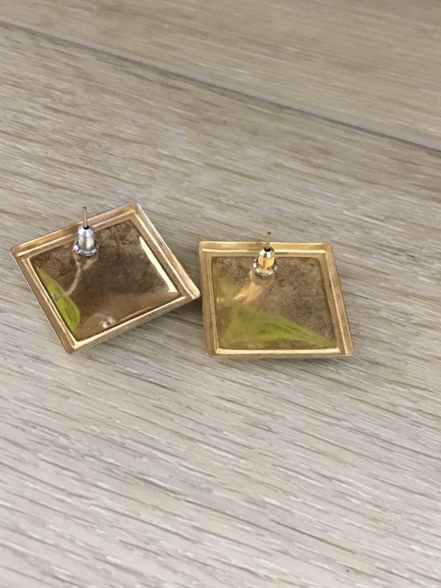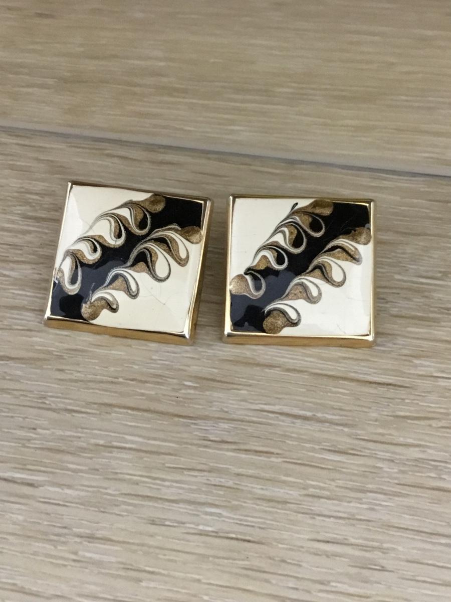 Gold tone square Swirly design earrings