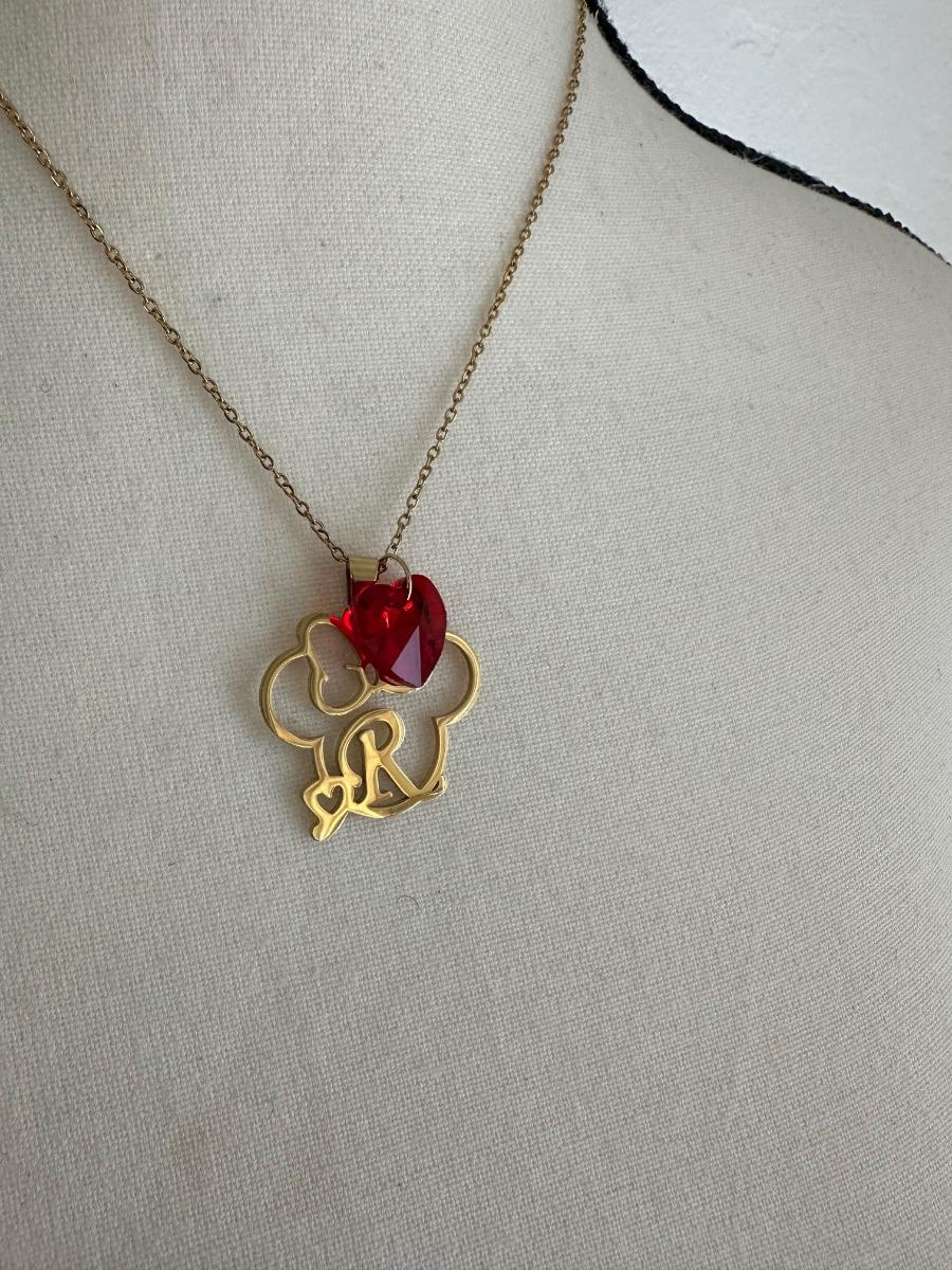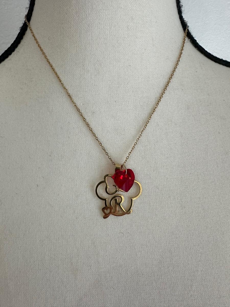 Gold tone, stainless steel crystal heart charm necklace