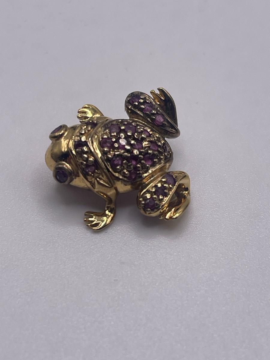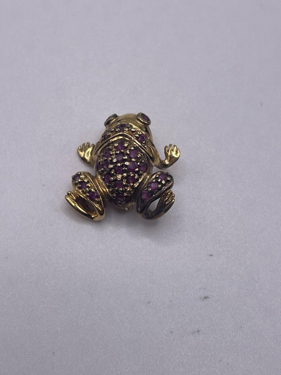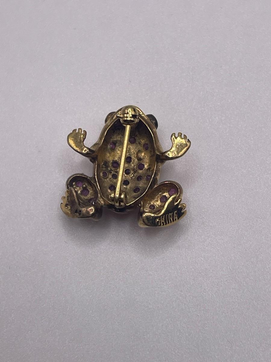 Gold Tone Sterling Silver Brooch with Pink Stones