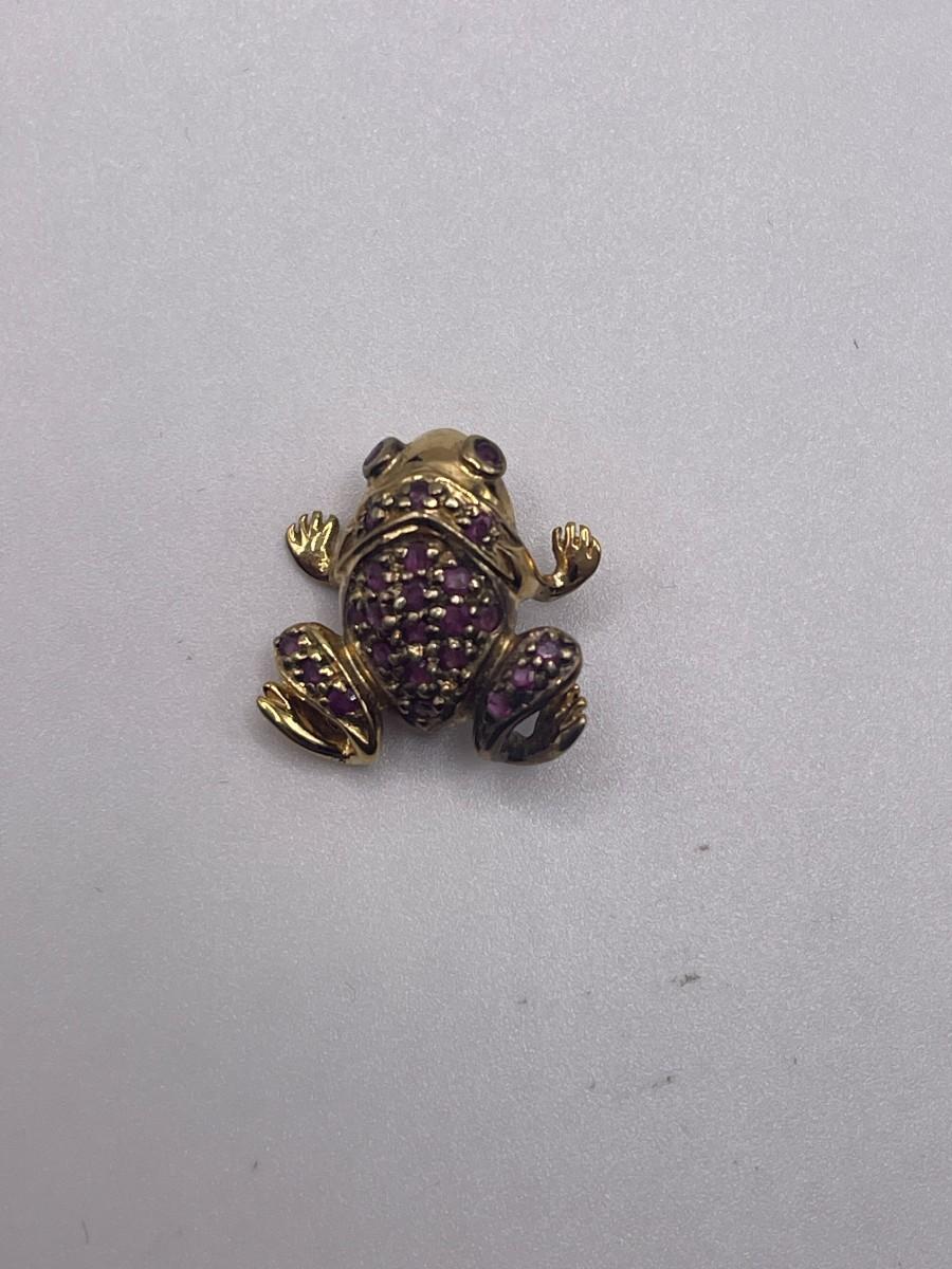 Gold tone sterling silver brooch with pink stones. Marked 925. Approx 3/4" x 3/4"