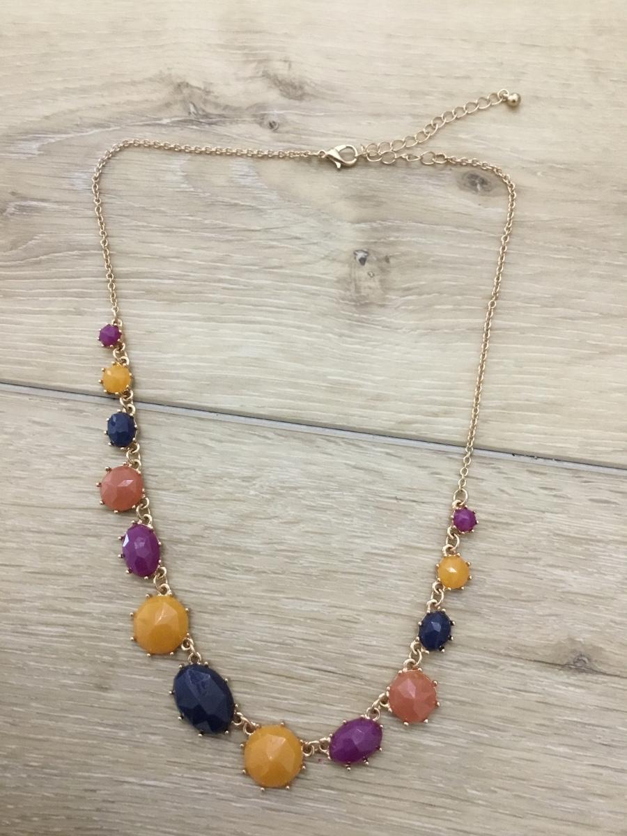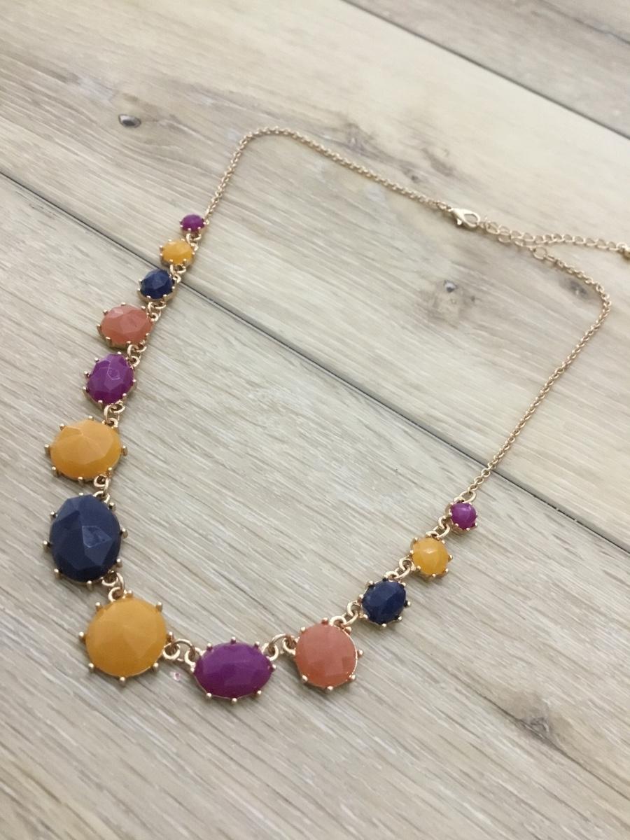 Gold tone stone gem like necklace