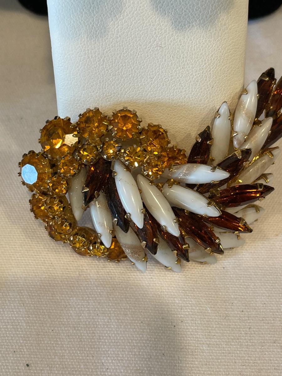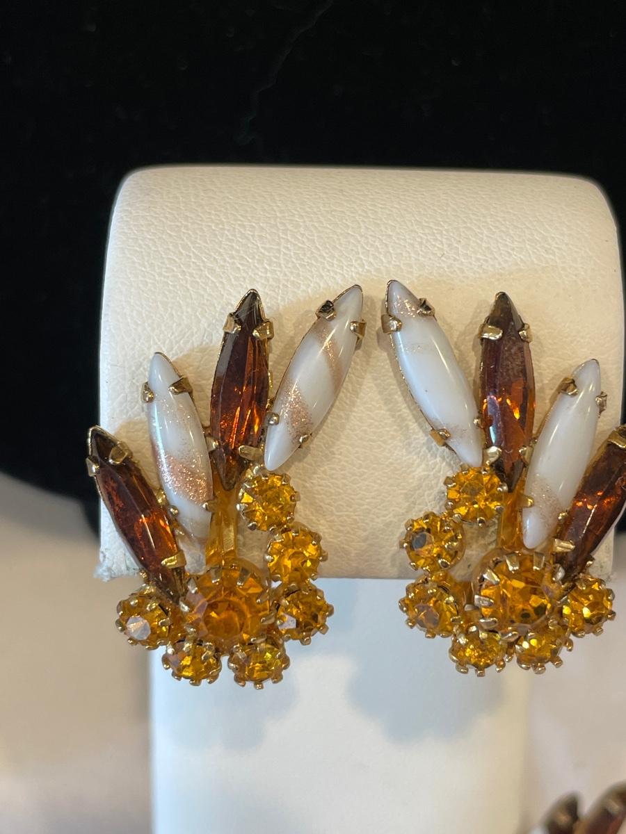 Gold tone stones with white & brown set