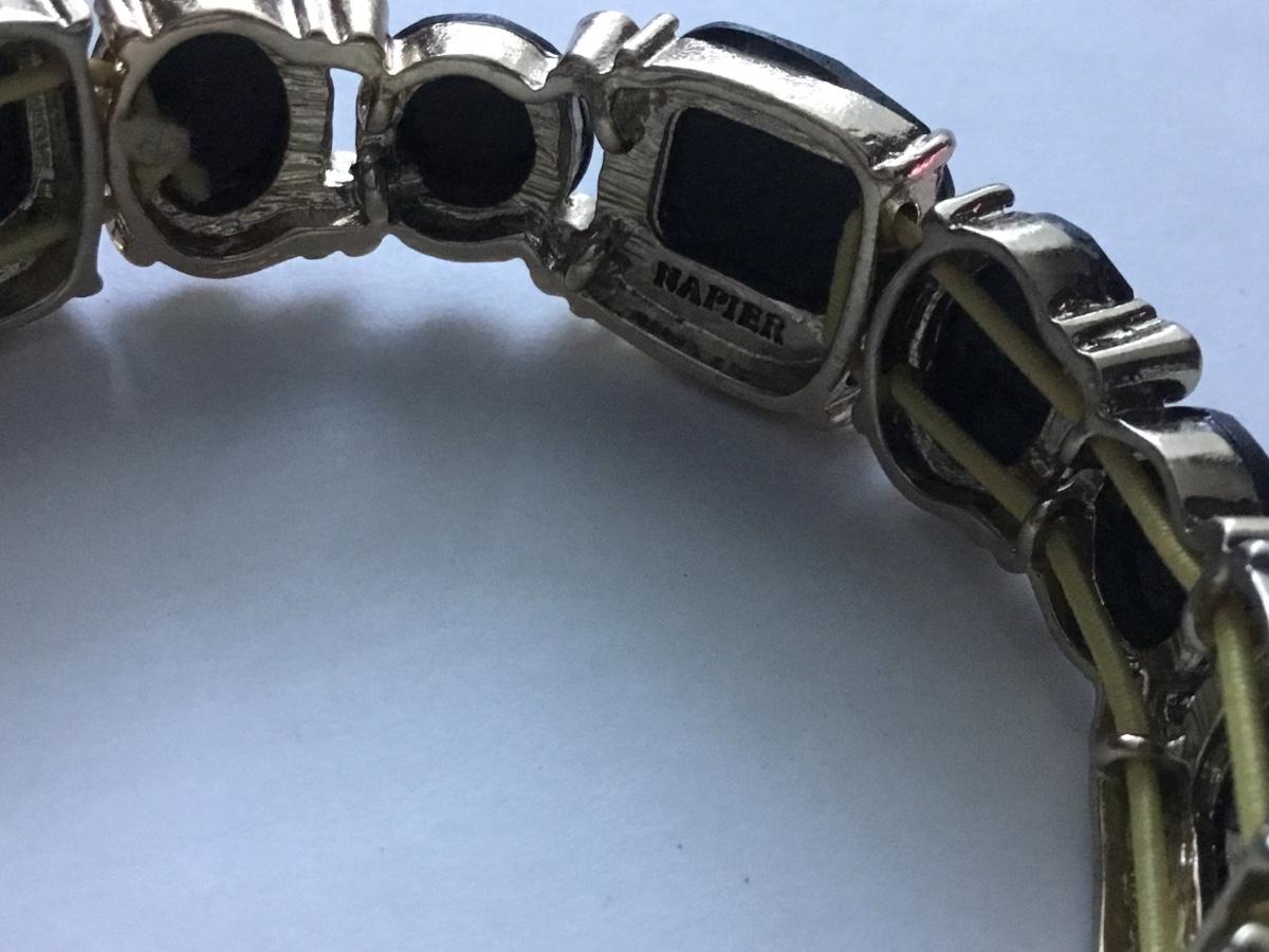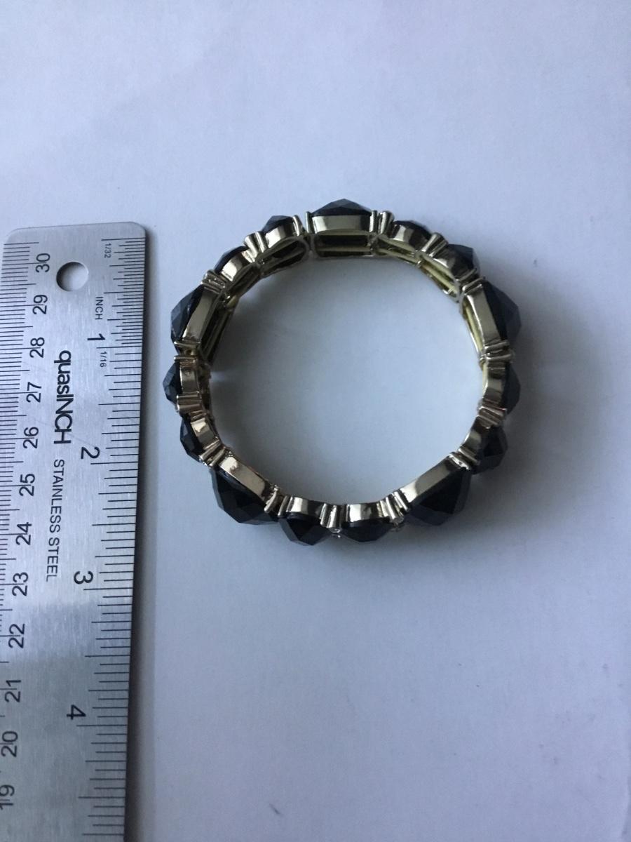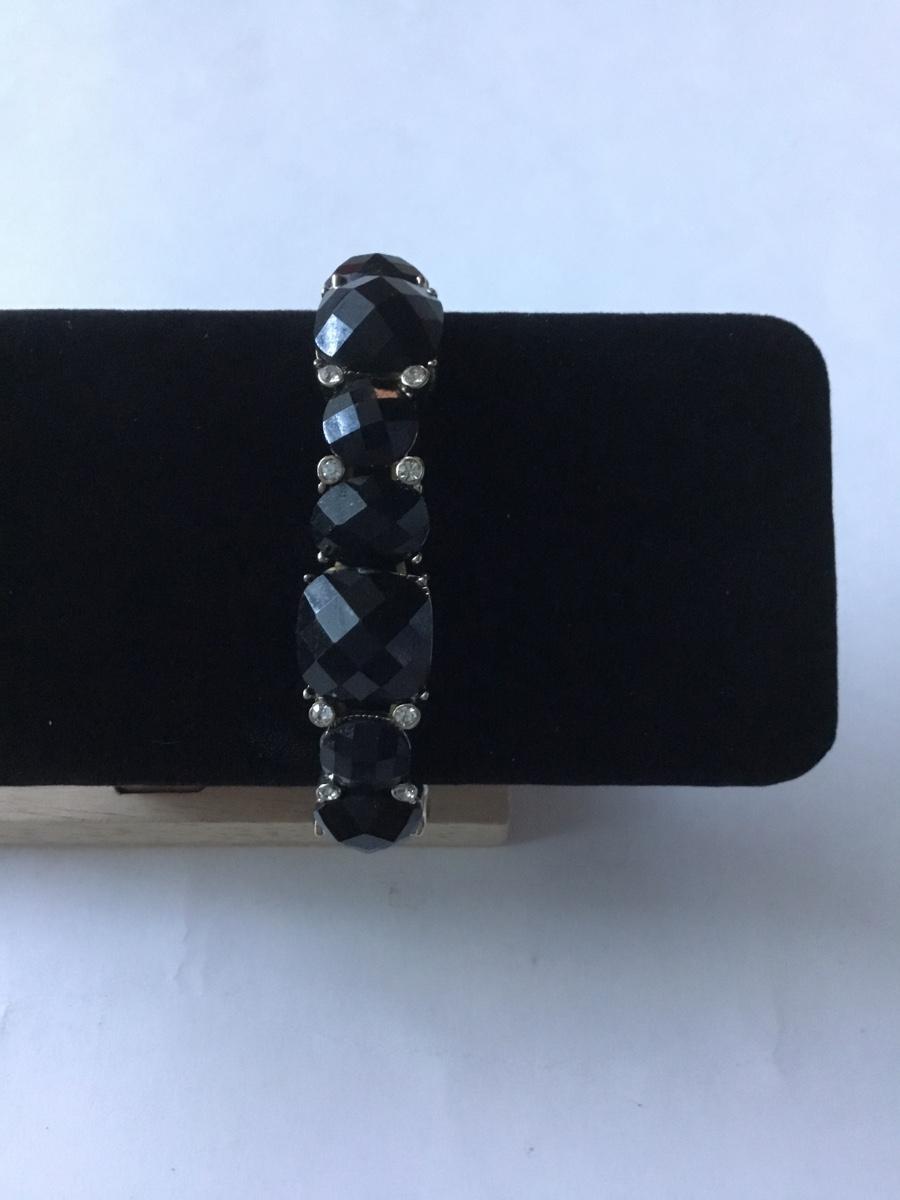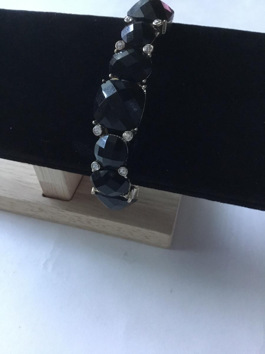 Gold tone stretch bracelet black faceted rhinestone Napier