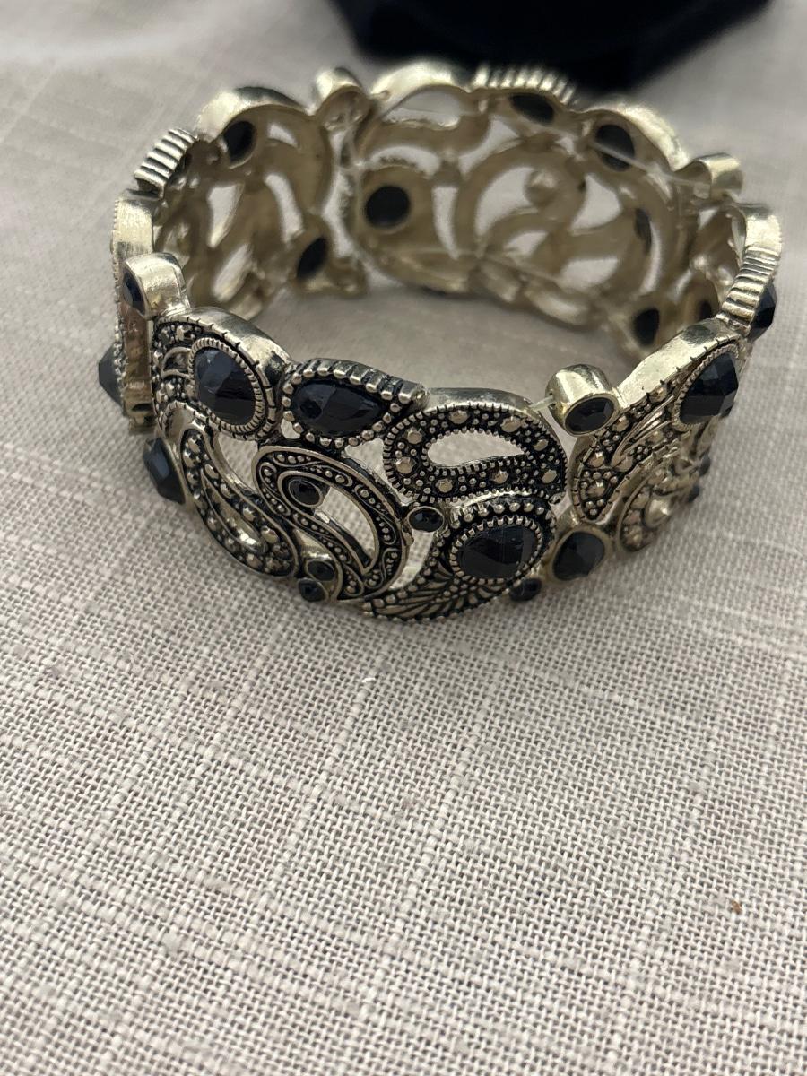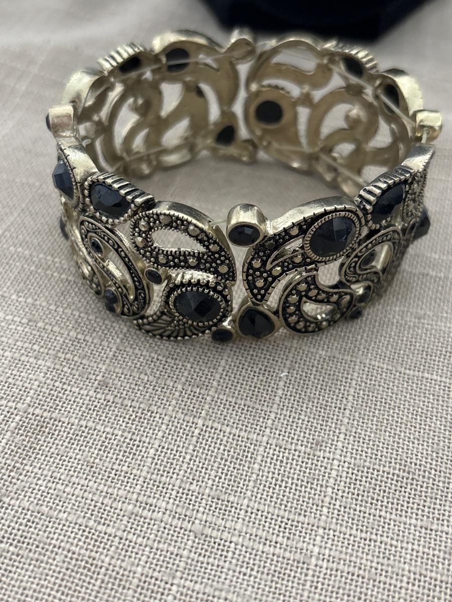 Gold tone stretchy bracelet with black stones