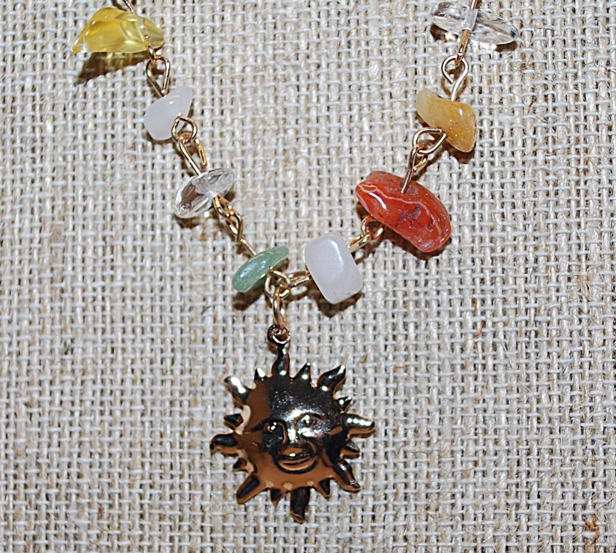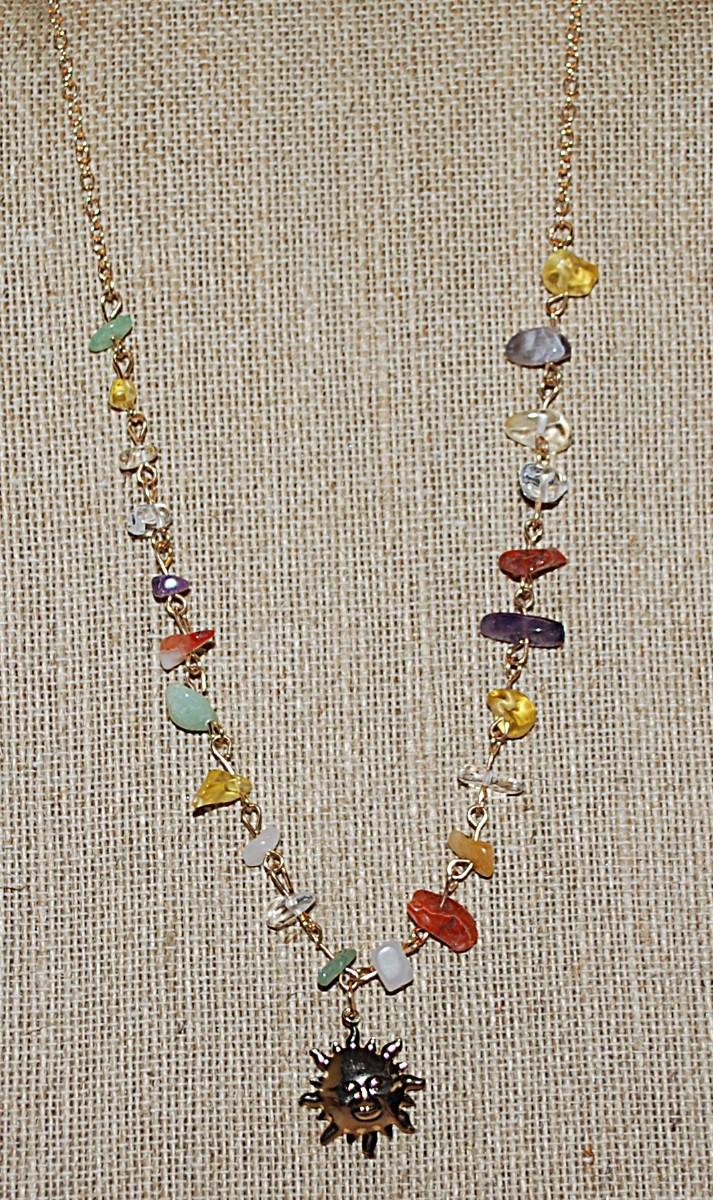Gold Tone "SUNFACE" NECKLACE with Irregular Shaped Multicolor Beads and Gold Tone Chain & Lobster Clasp 18" L