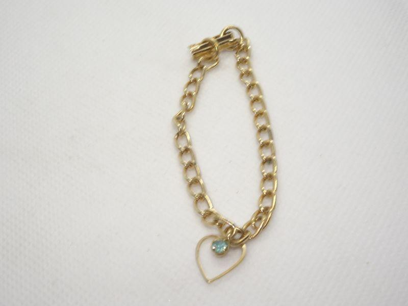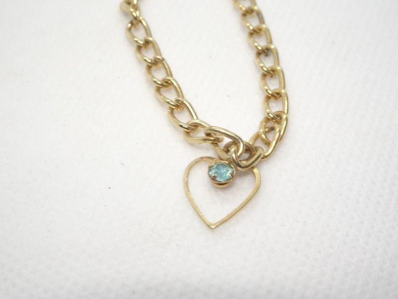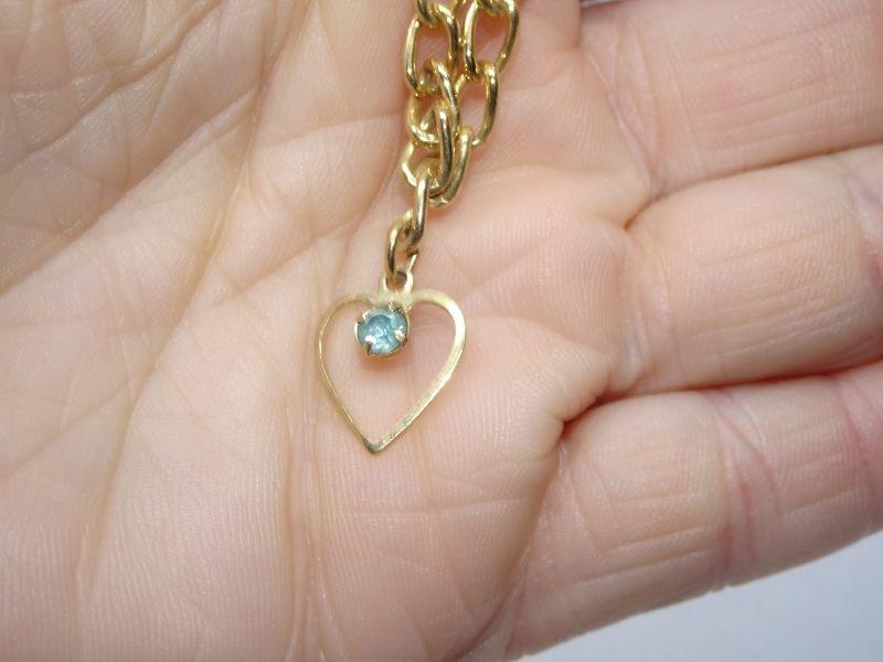 Gold Tone Sweetheart Heart Charm Bracelet, Aquamarine