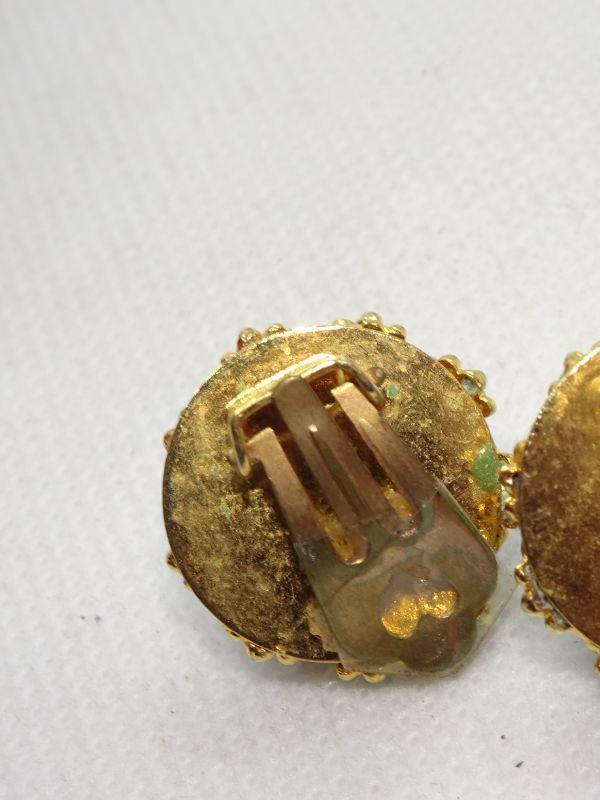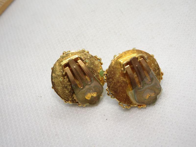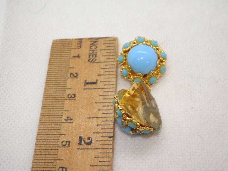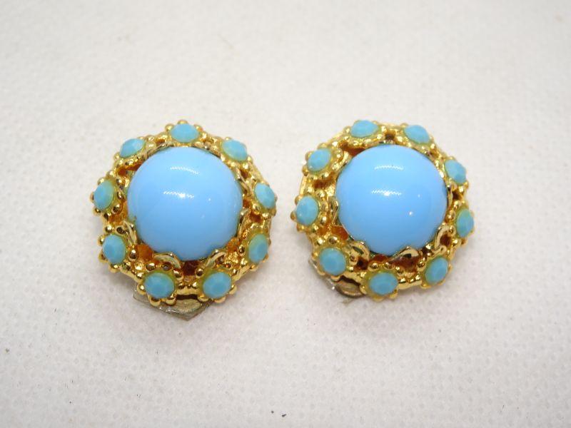 Gold Tone Teal Button Style Clip Earrings