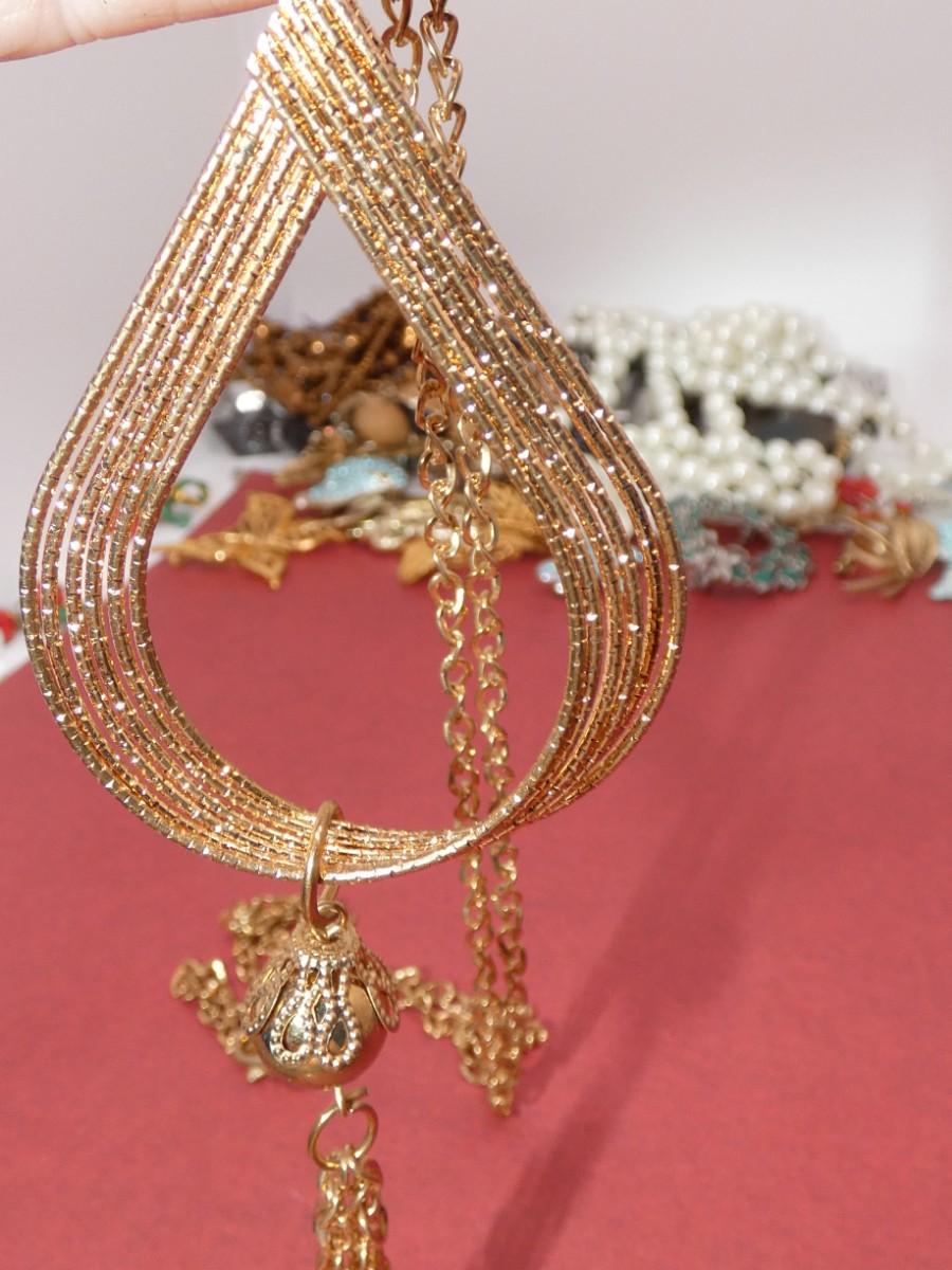 Gold Tone Tear Drop Pendant Necklace