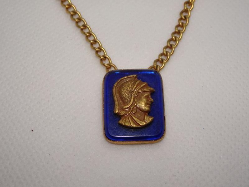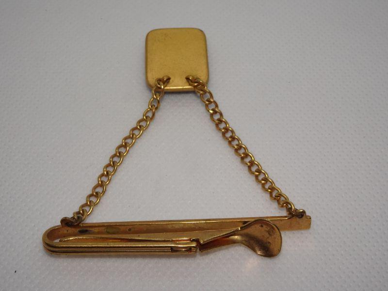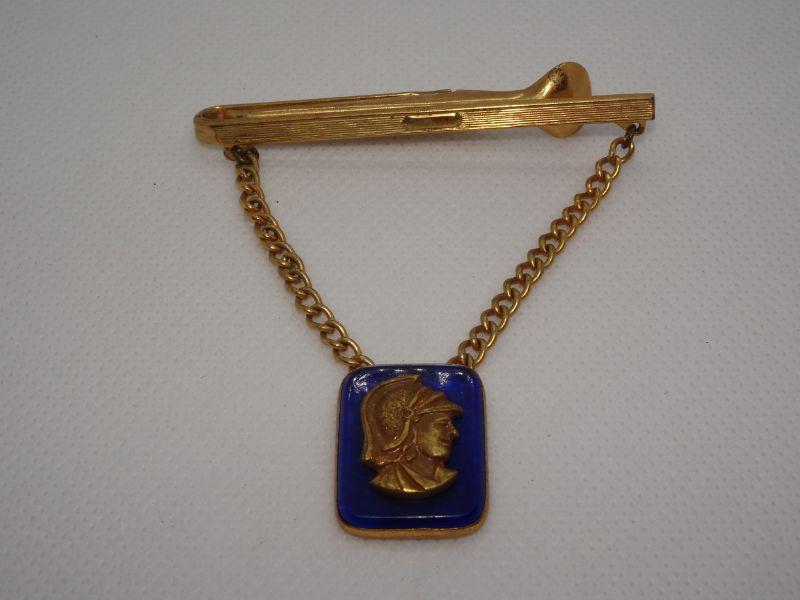 Gold Tone Tie Bar, Glass Pendant with Viking solder
