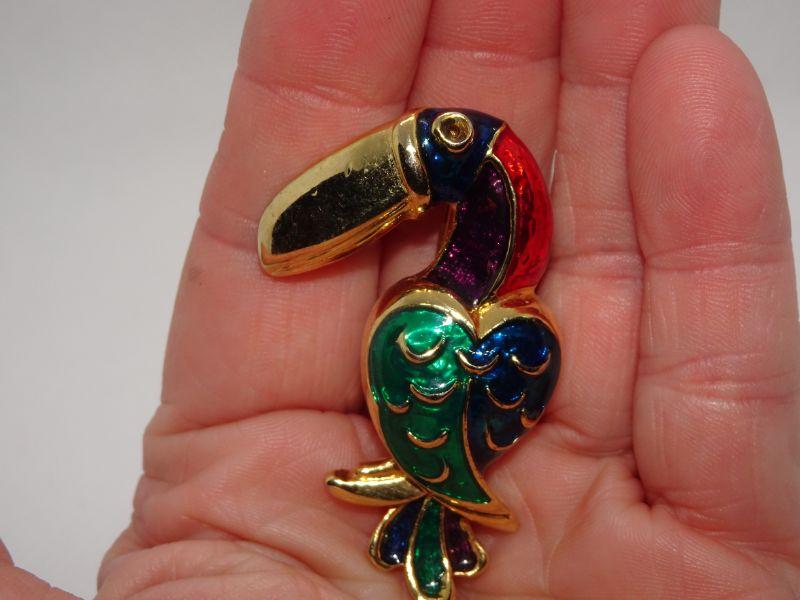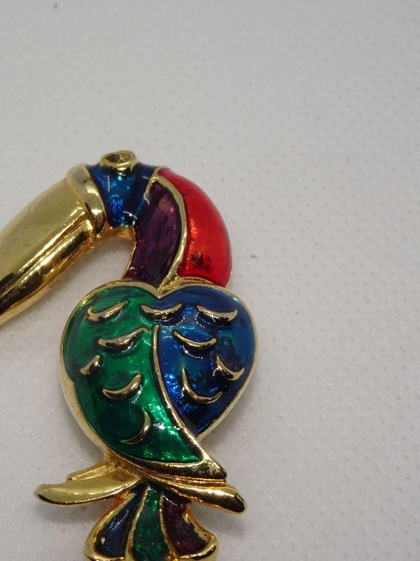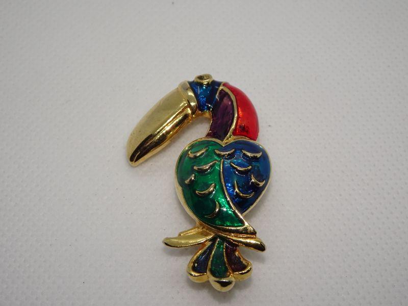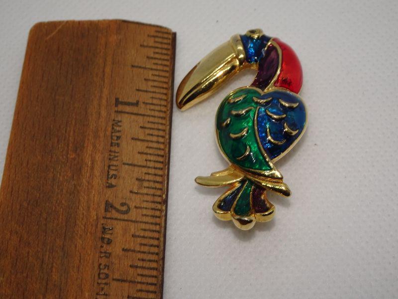 Gold Tone Toucan Brooch Pendant, Colorful Bird Pin
