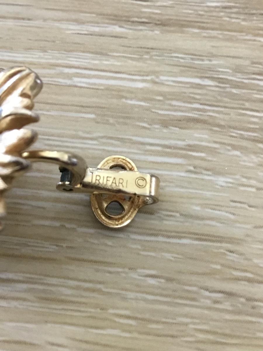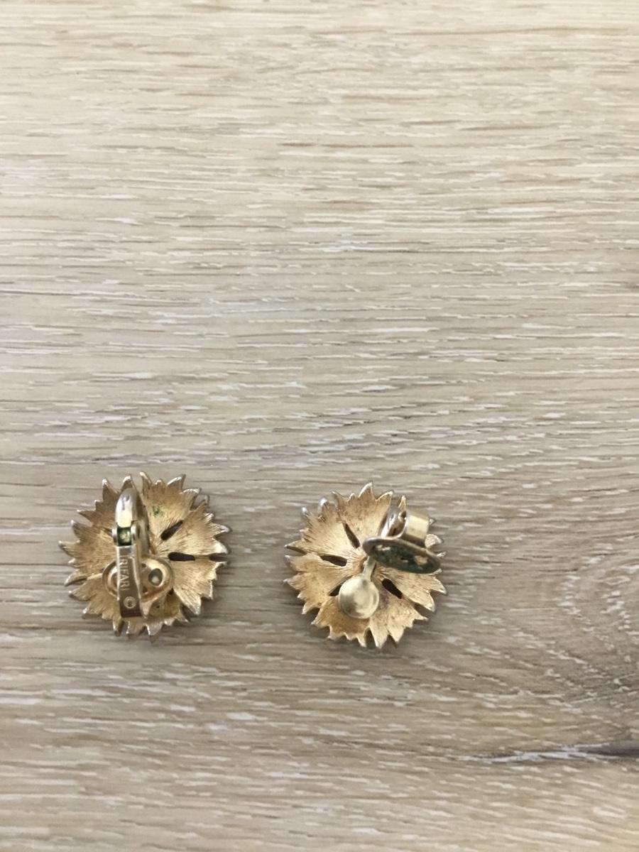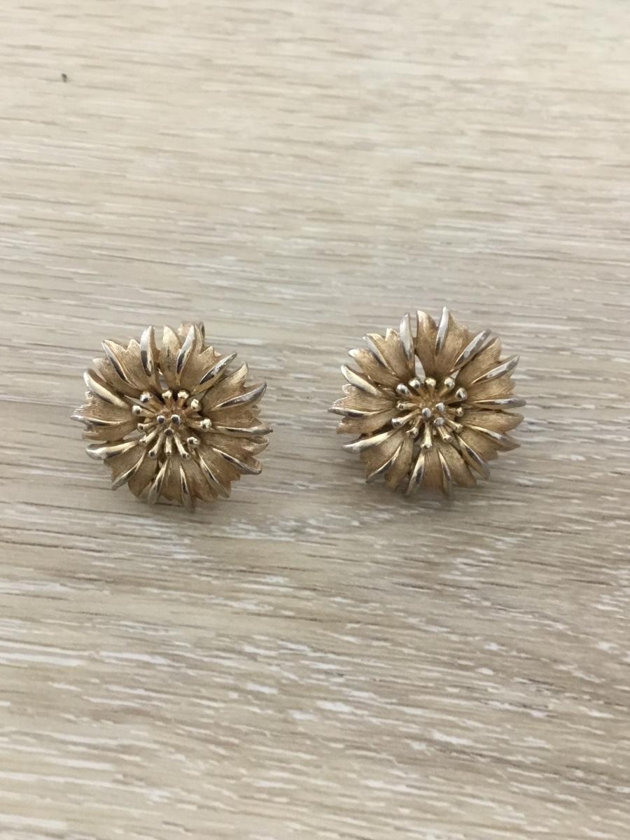 Gold tone Trifari flower clip on earrings