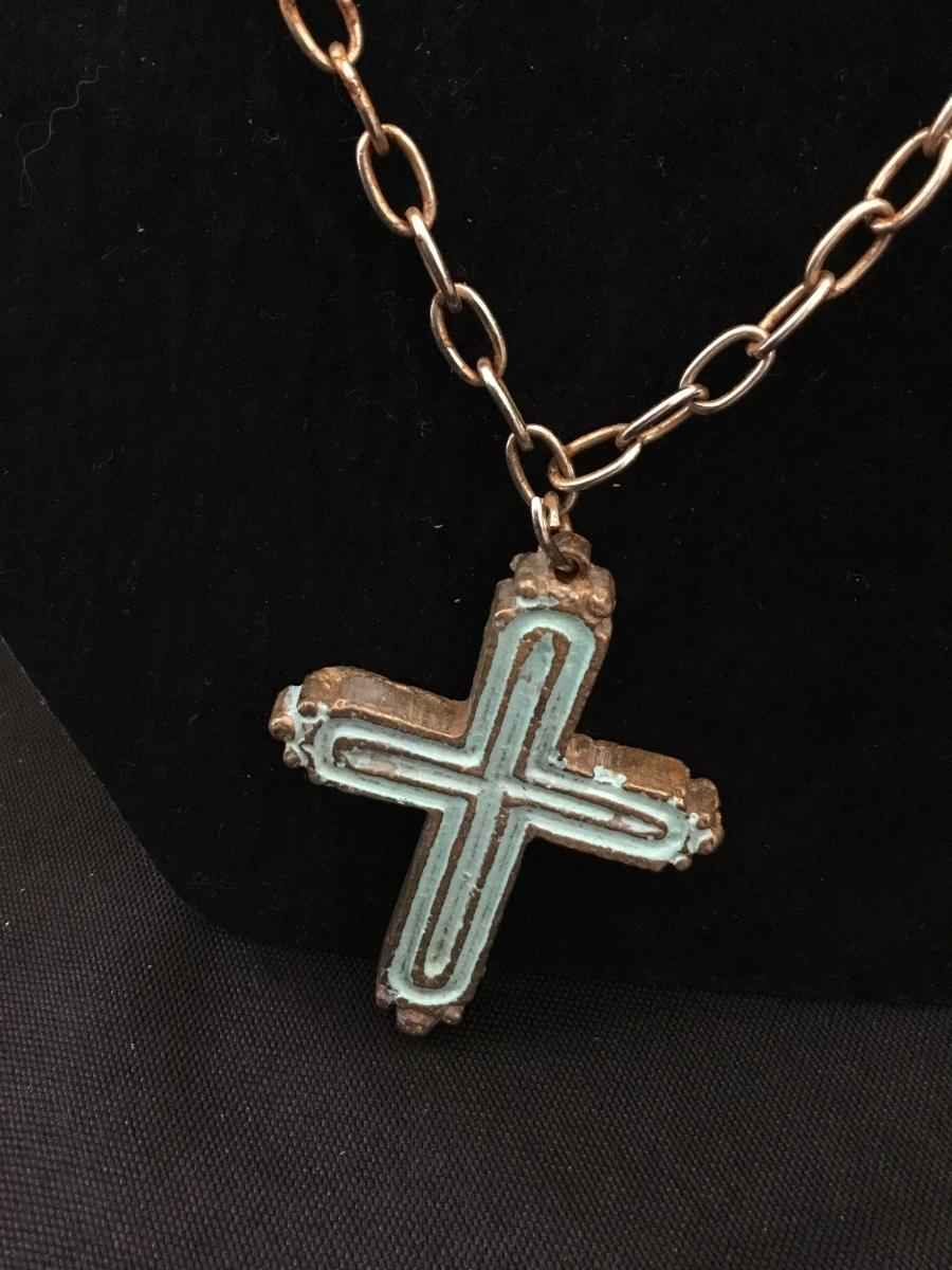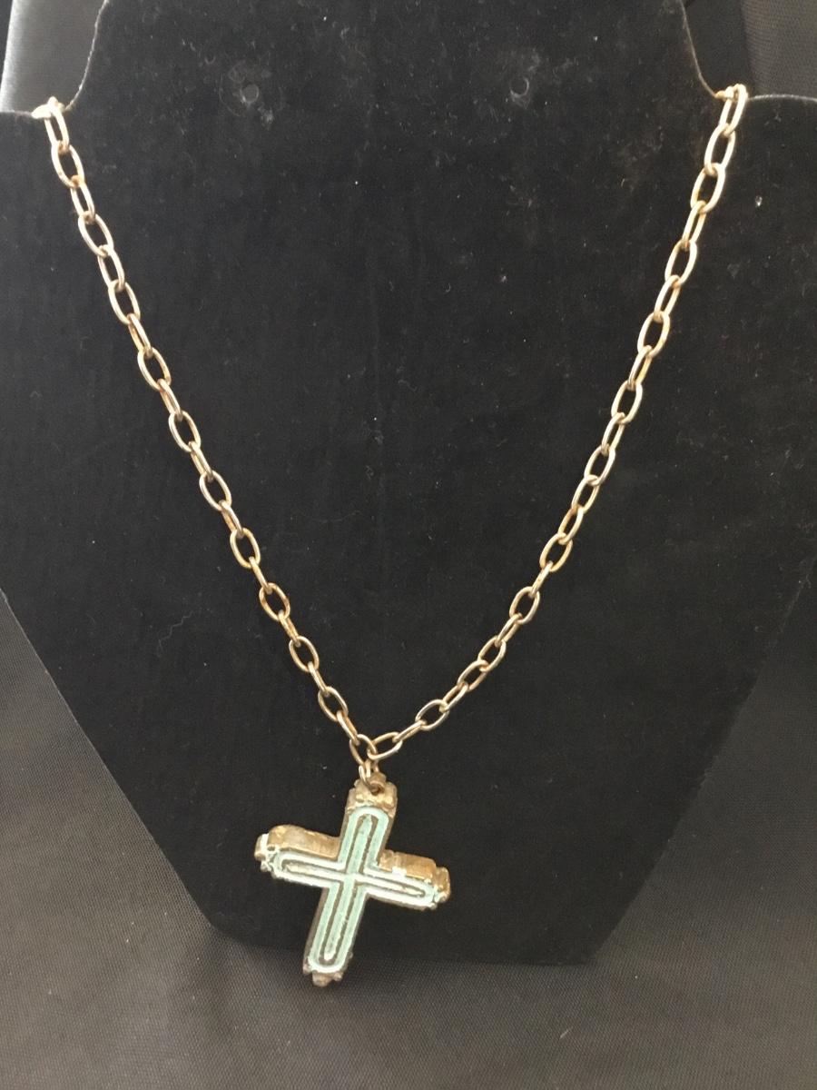 Gold tone turquoise tone cross pendant necklace