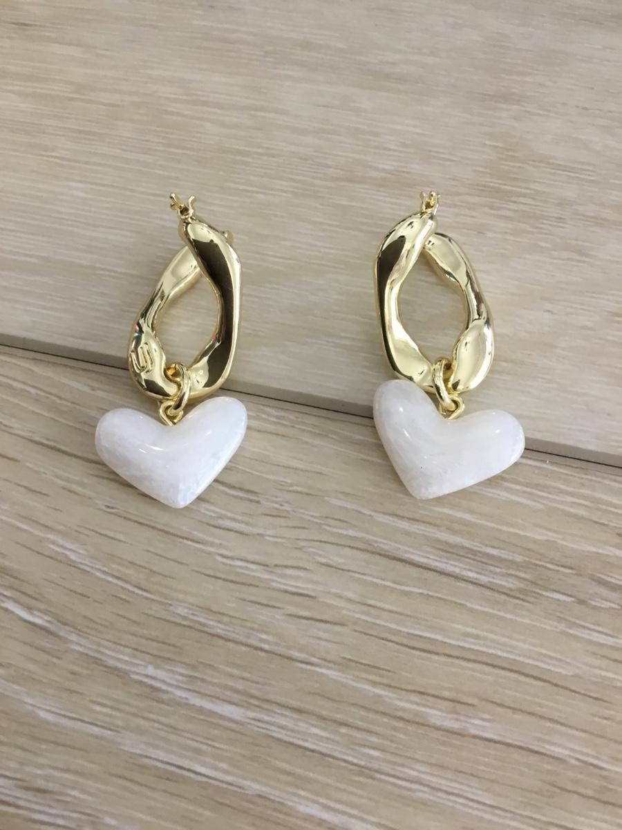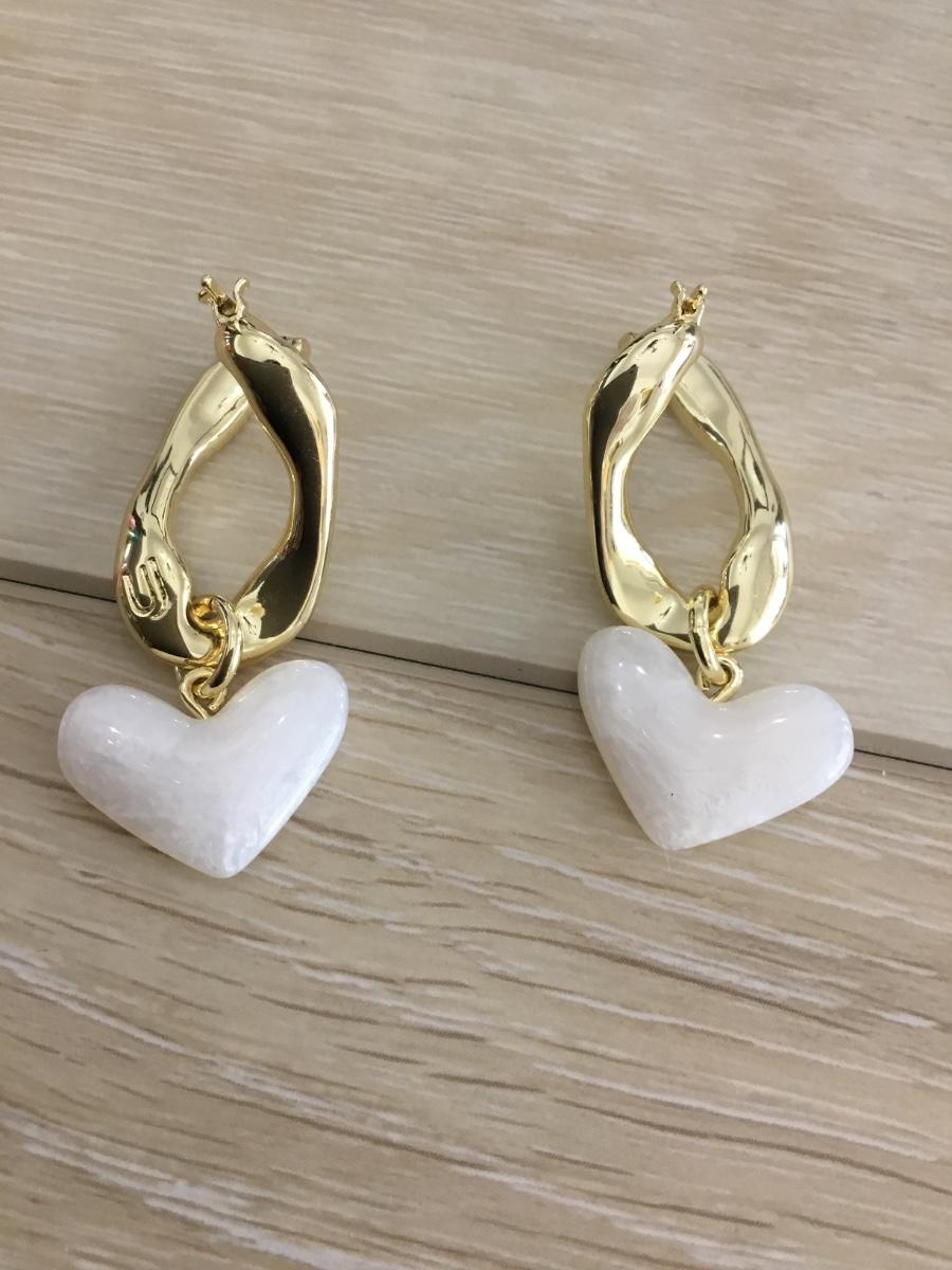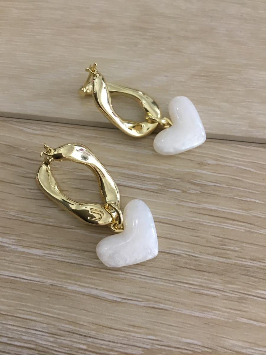 Gold tone twist with white heart earrings
