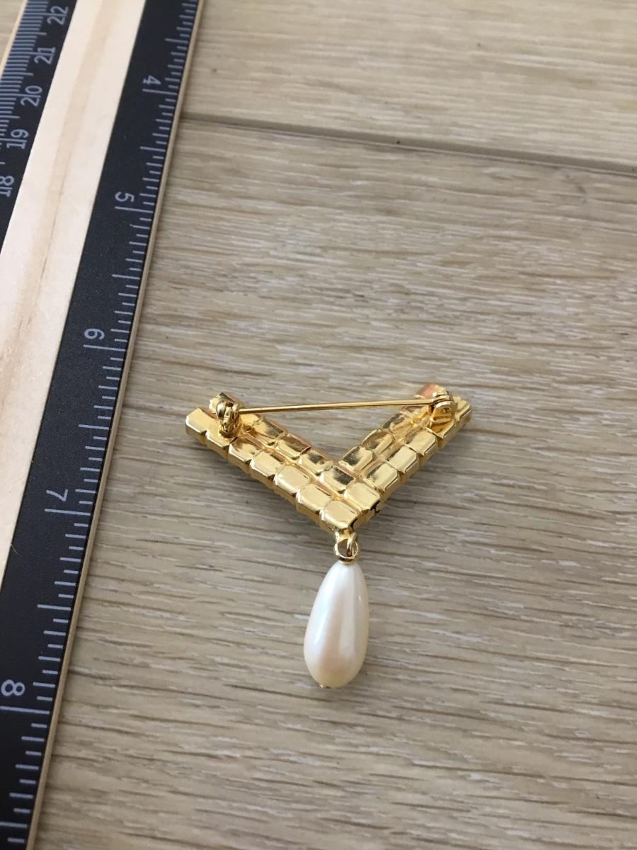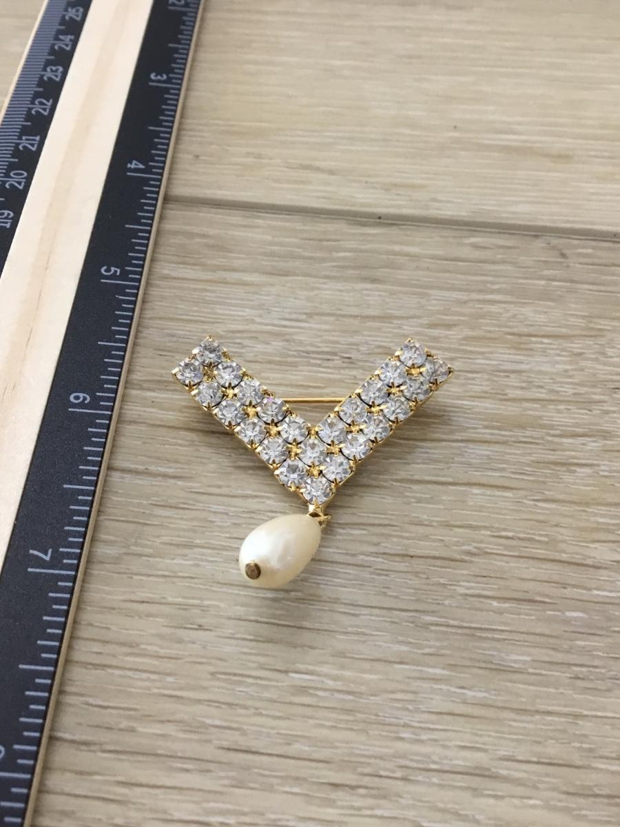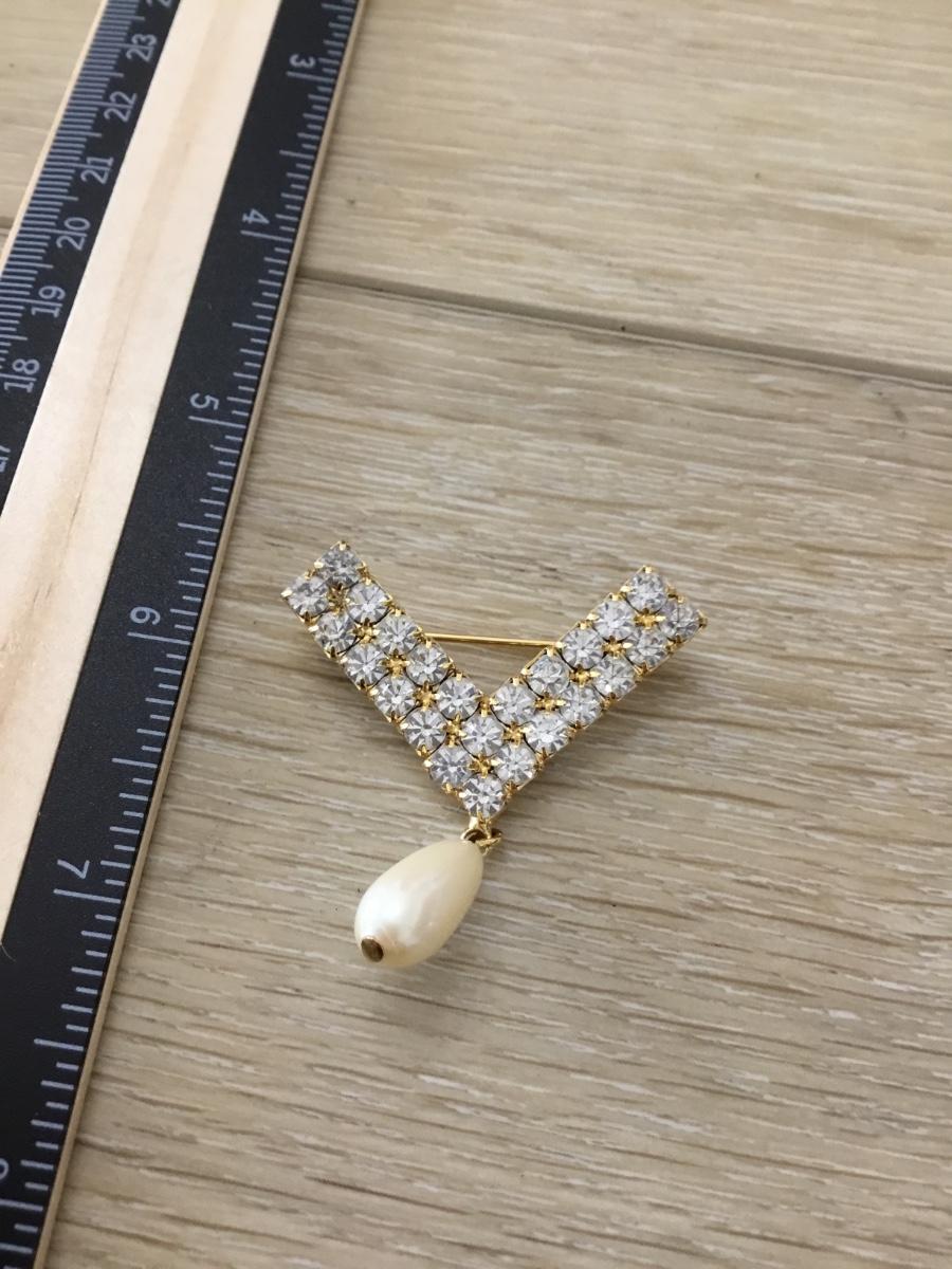 Gold tone v rhinestone dangle bead vintage pin