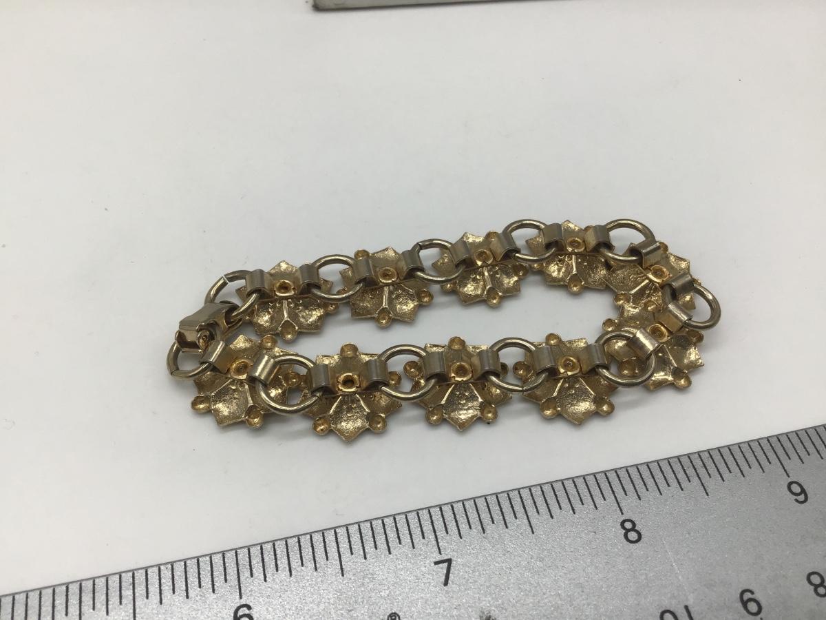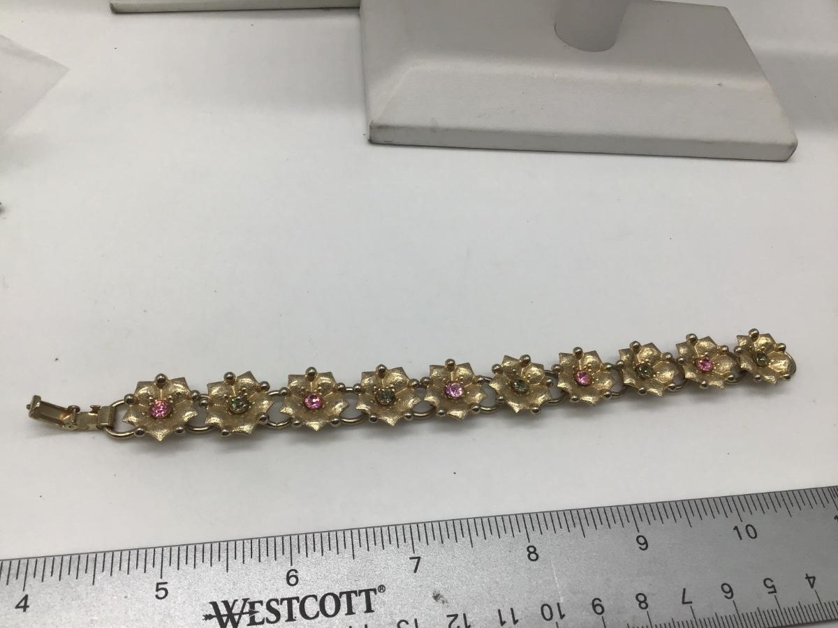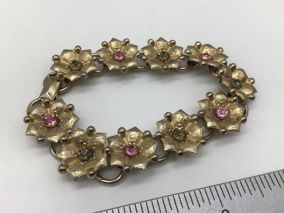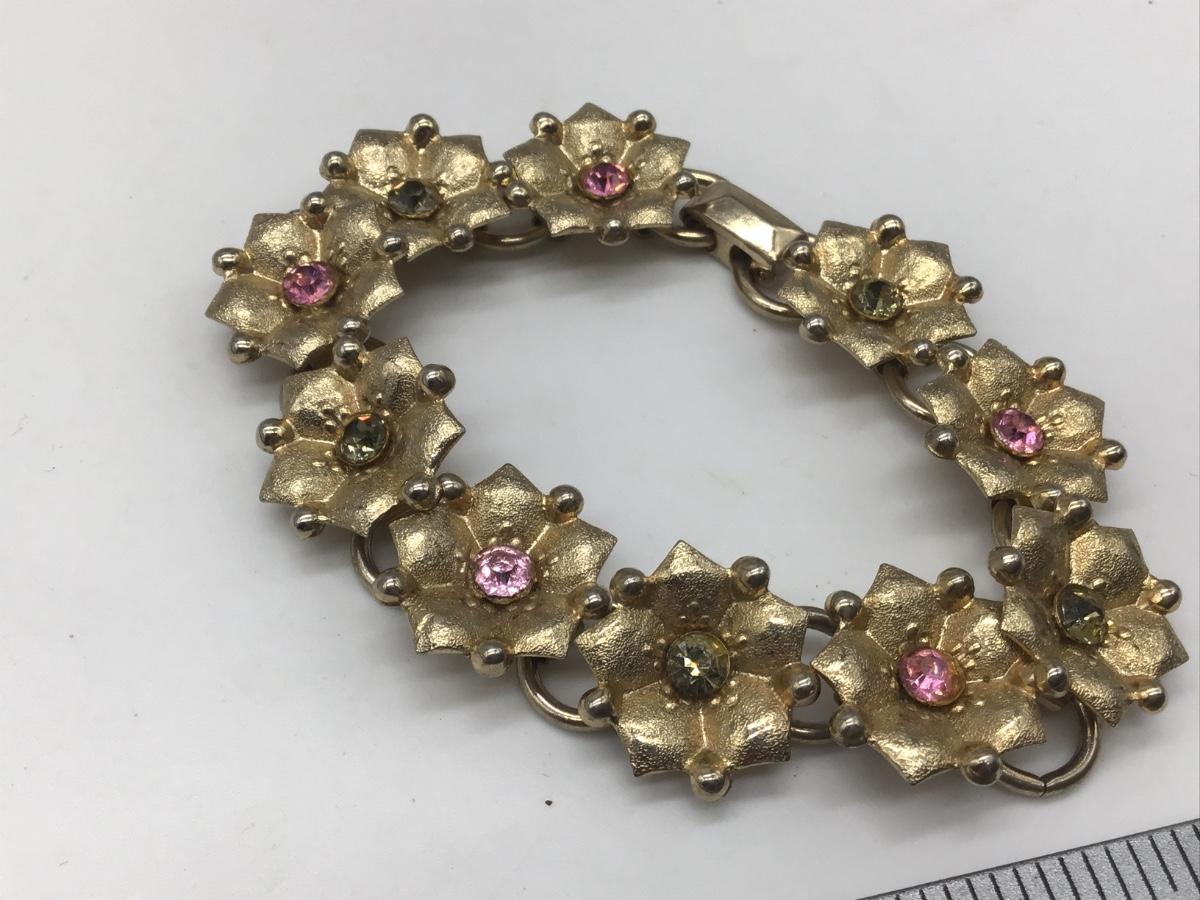 Gold Tone Flower With Rhinestone Centers Vintage Bracelet