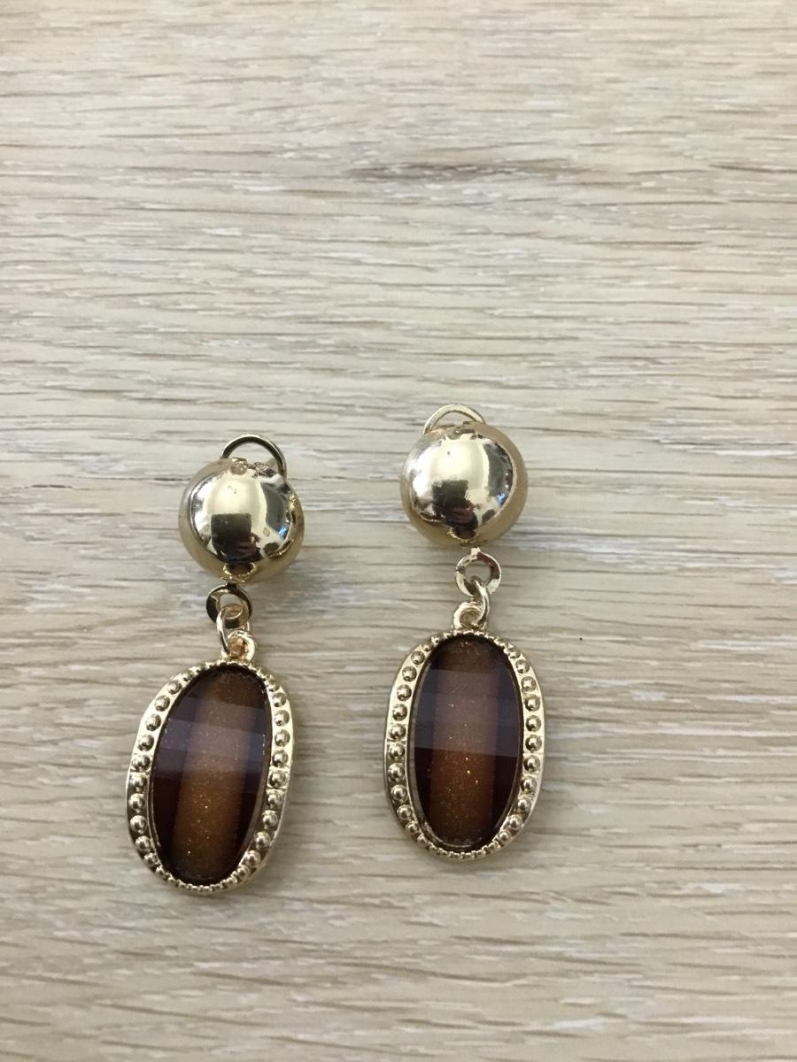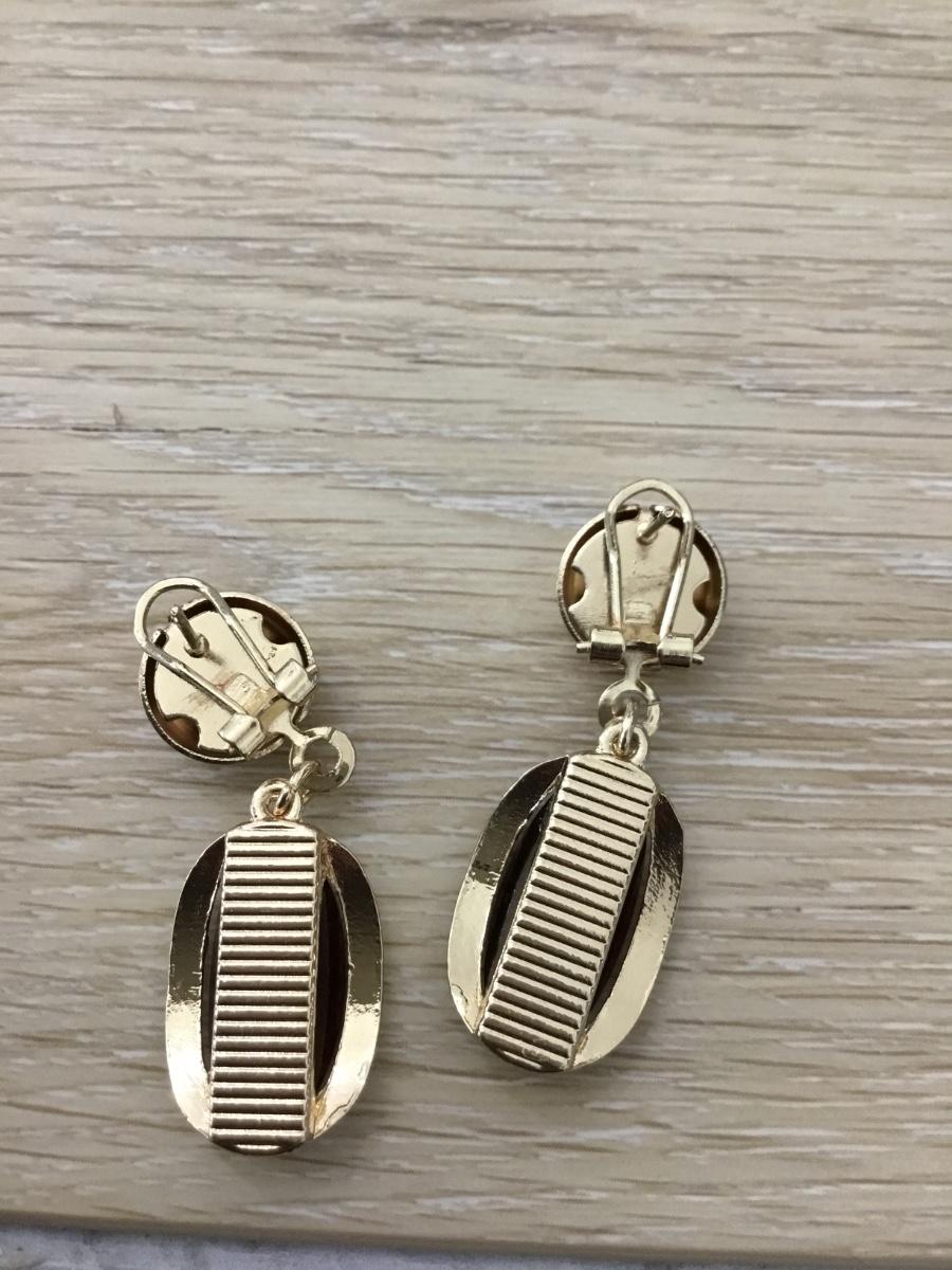 Gold tone vintage brown earrings