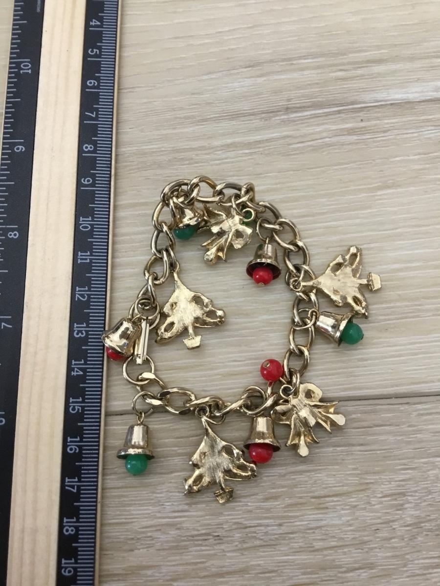 Gold tone vintage charm bracelet Christmas