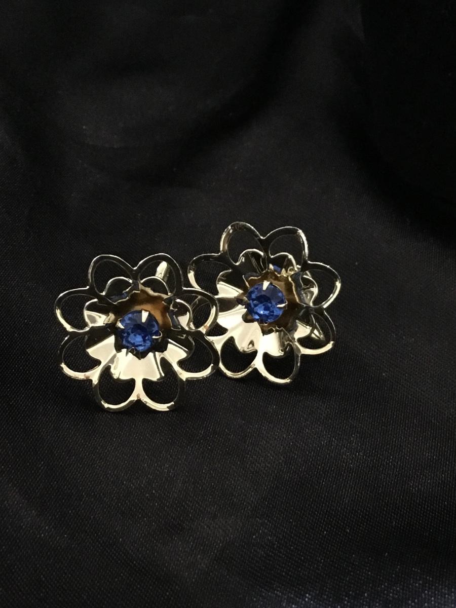 Gold tone vintage clip on flower earrings