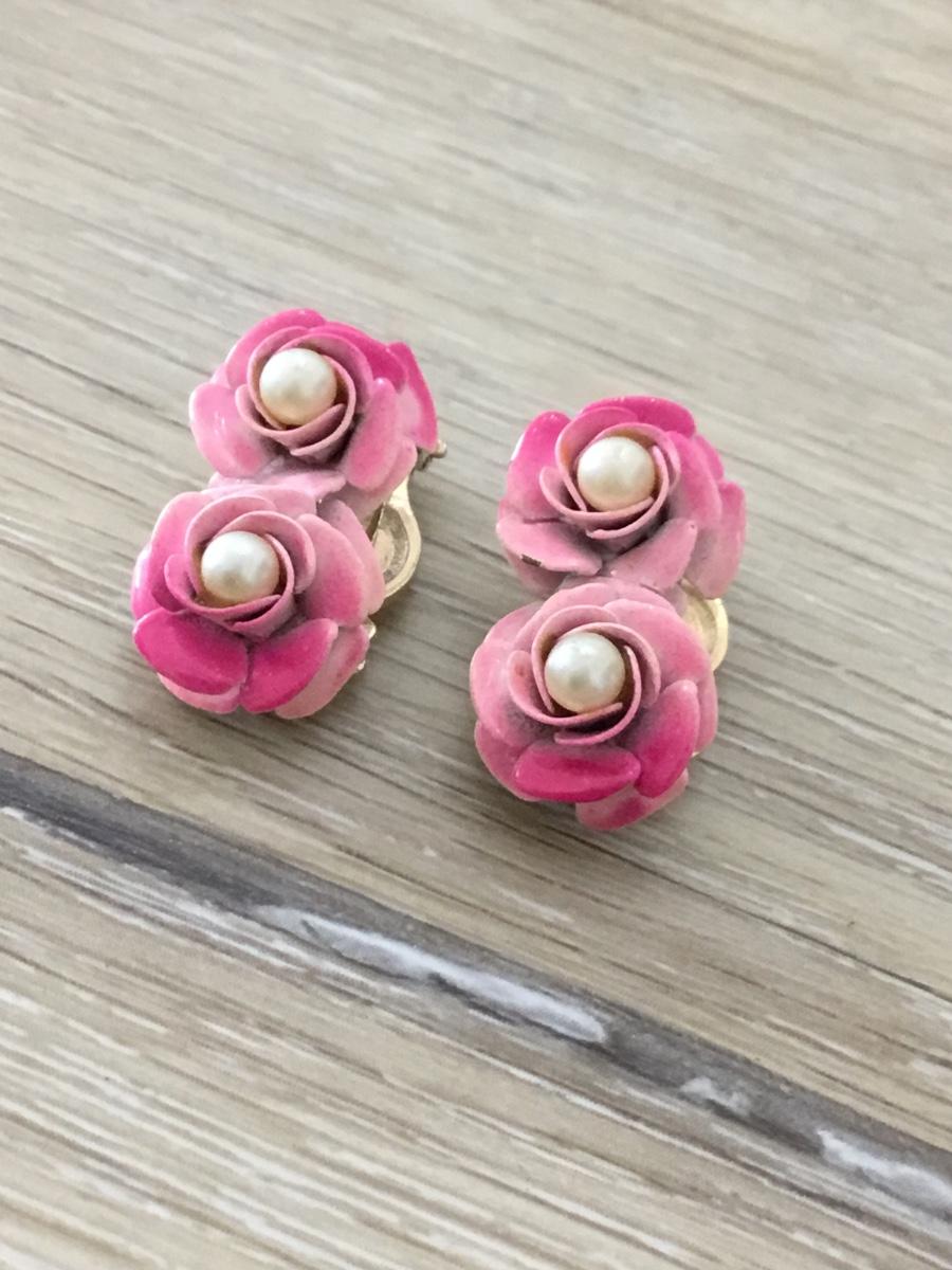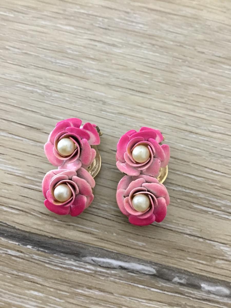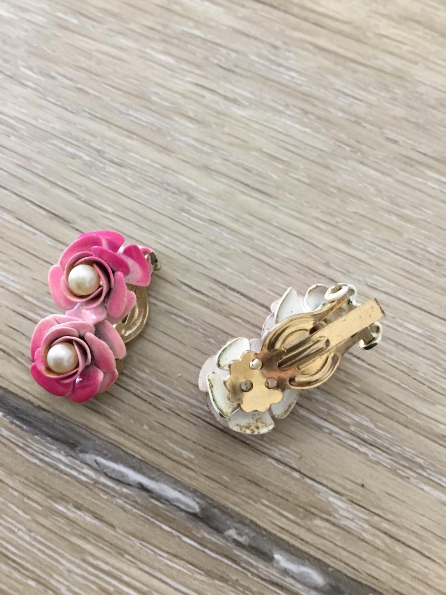 Gold tone vintage clip on flower earrings