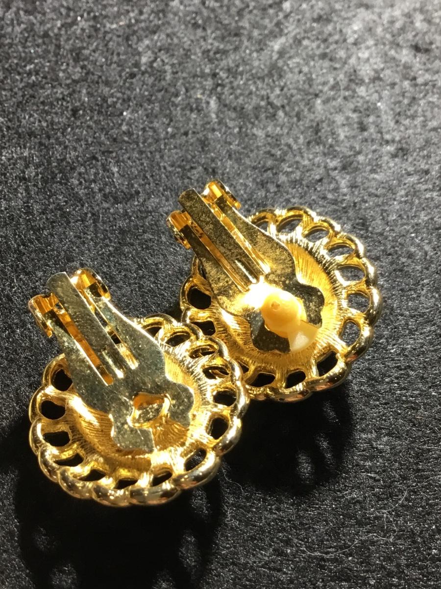 Gold tone vintage egg shaped fashion clip on earrings