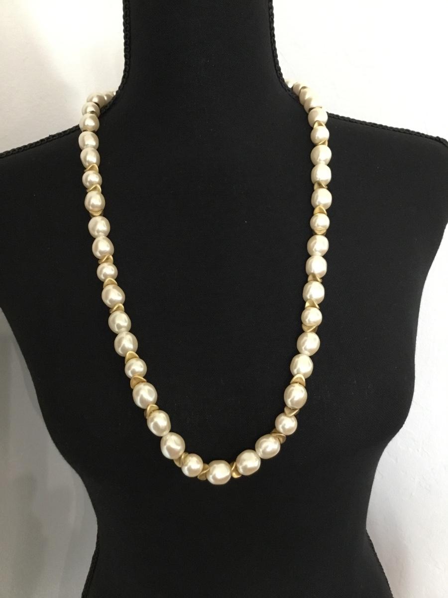 Gold tone vintage faux pearl necklace