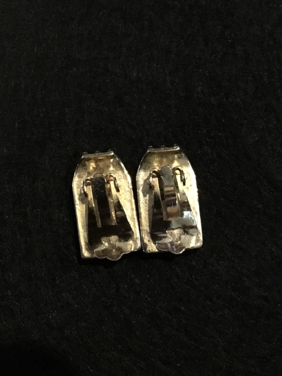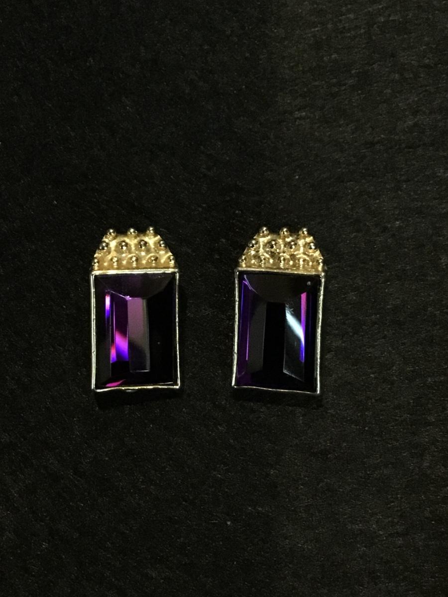 Gold tone vintage purple rectangle clip on earrings