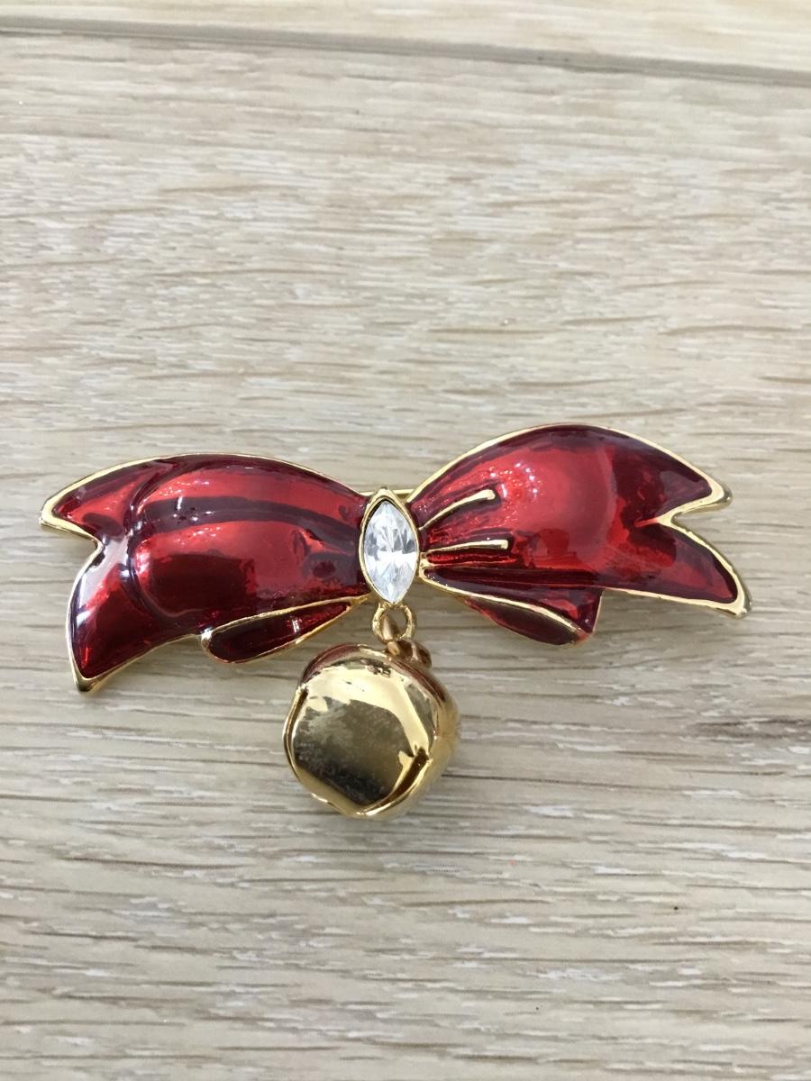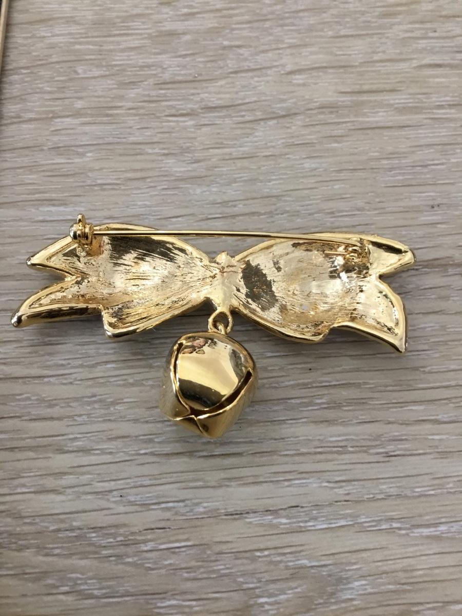 Gold tone vintage ribbon and bell pin