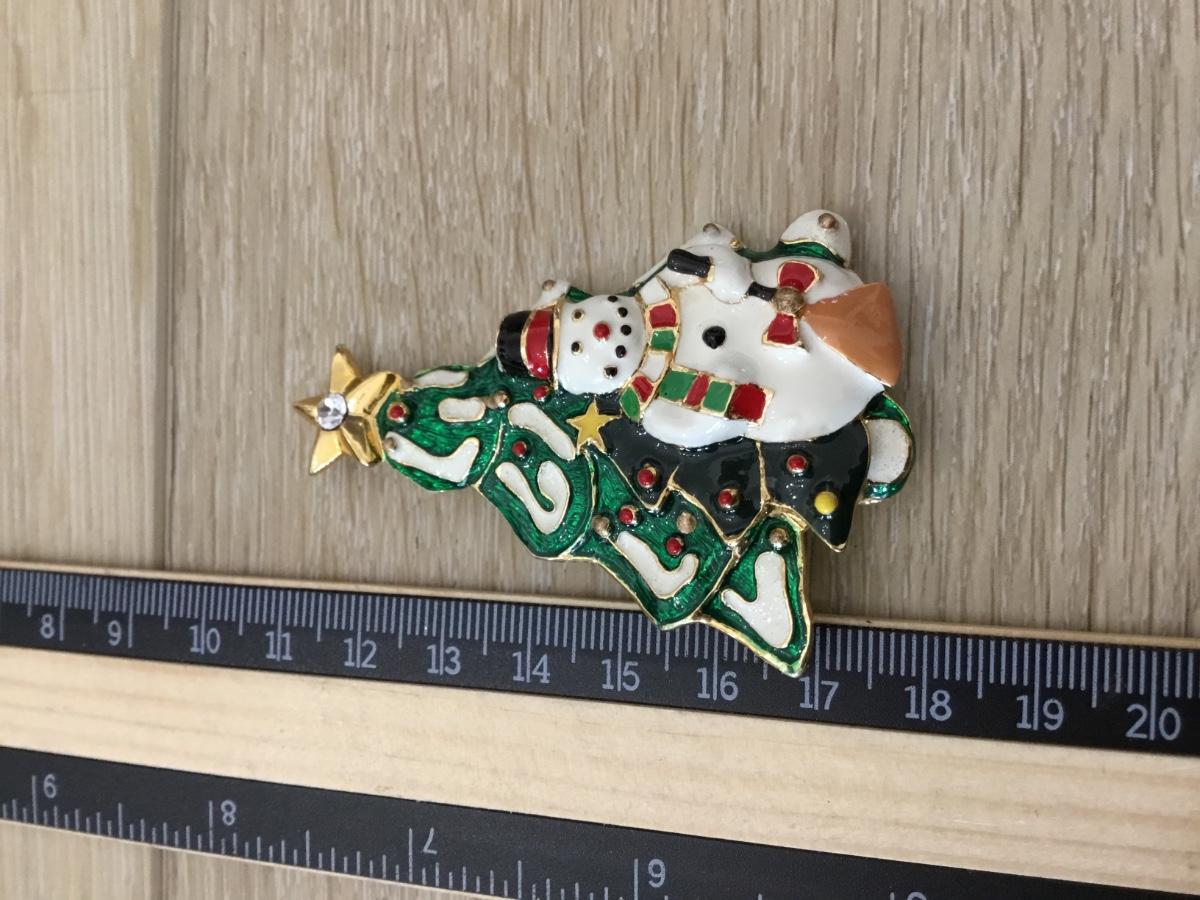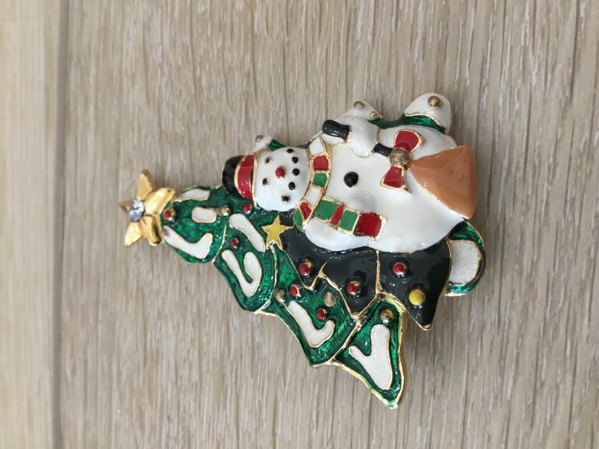 Gold tone vintage snowman and tree pin
