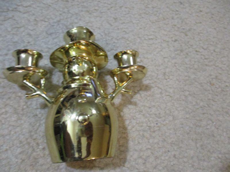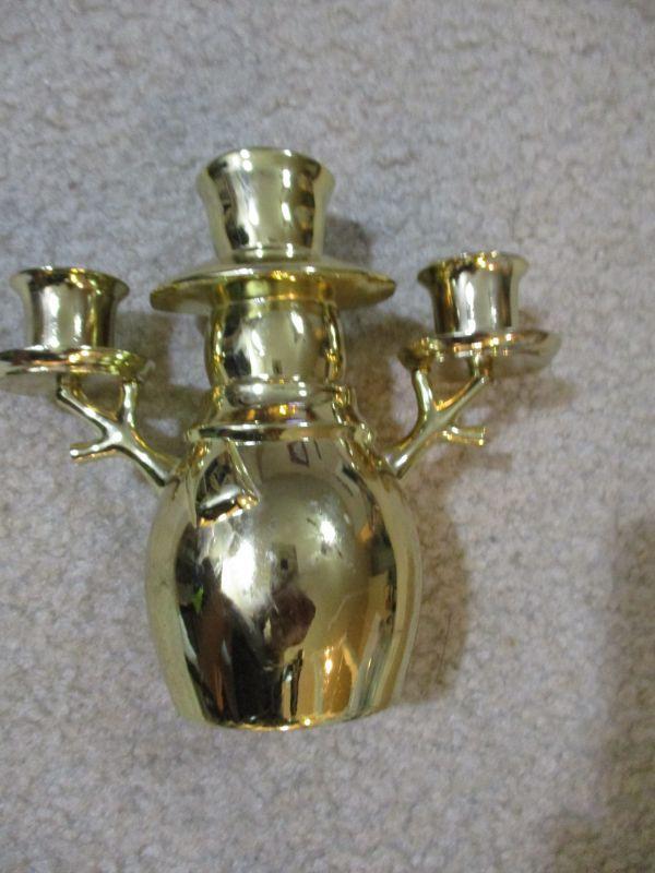 Gold Tone Vintage Snowman Candle Holder 5 1/2 " tall