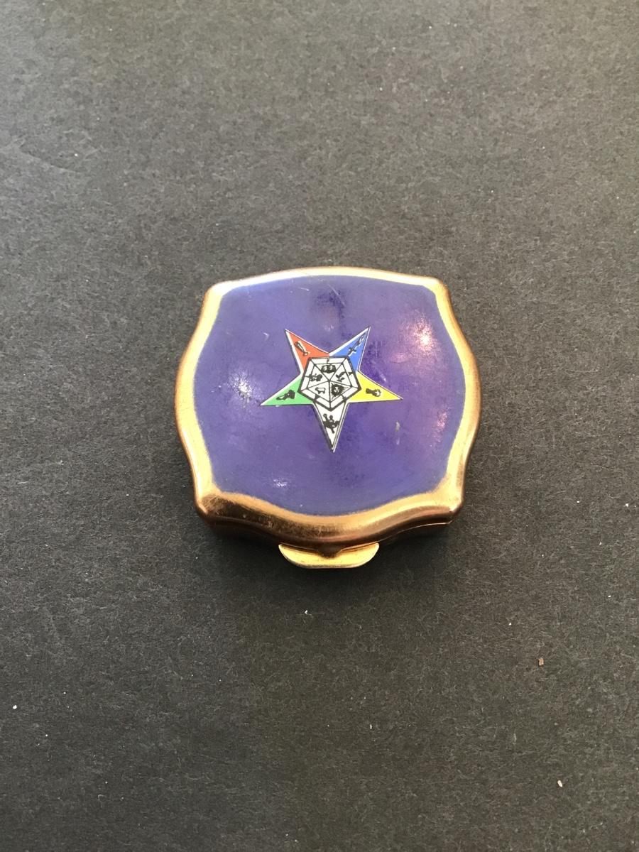 Gold tone, vintage, Stratton compact with eastern star Masonic appendant body