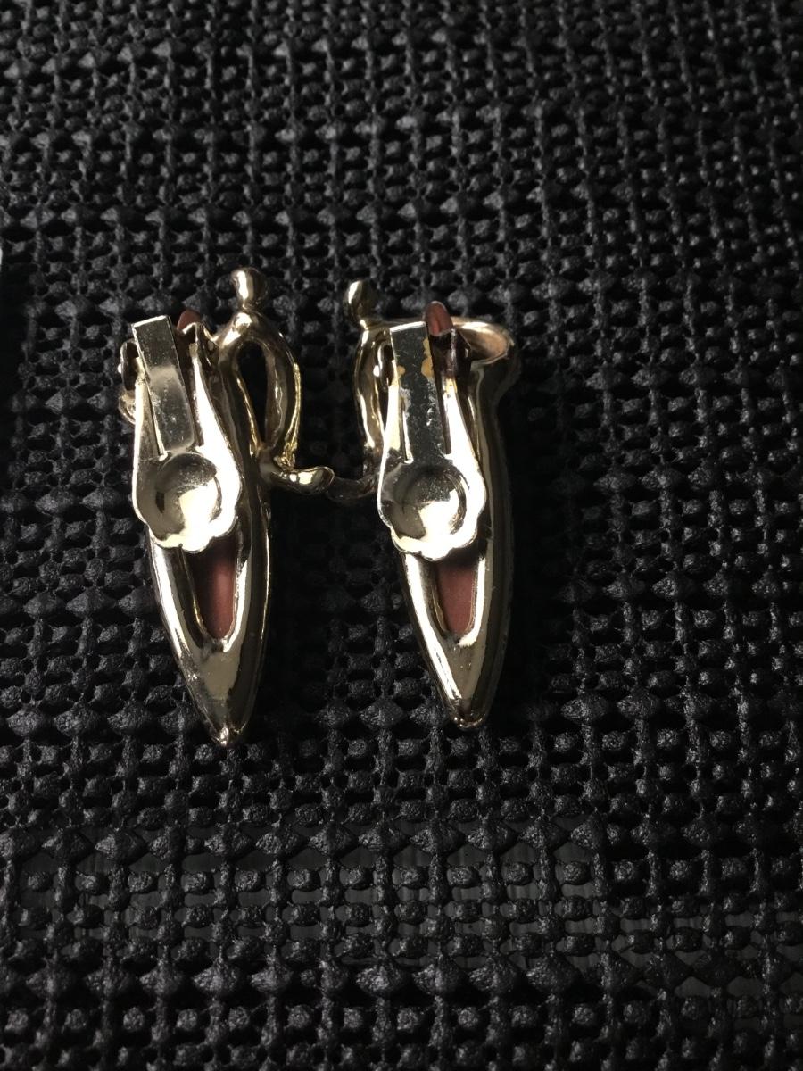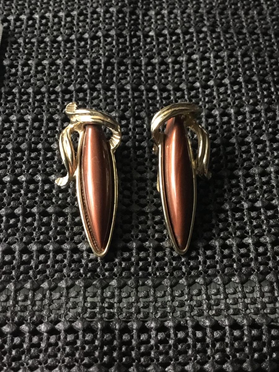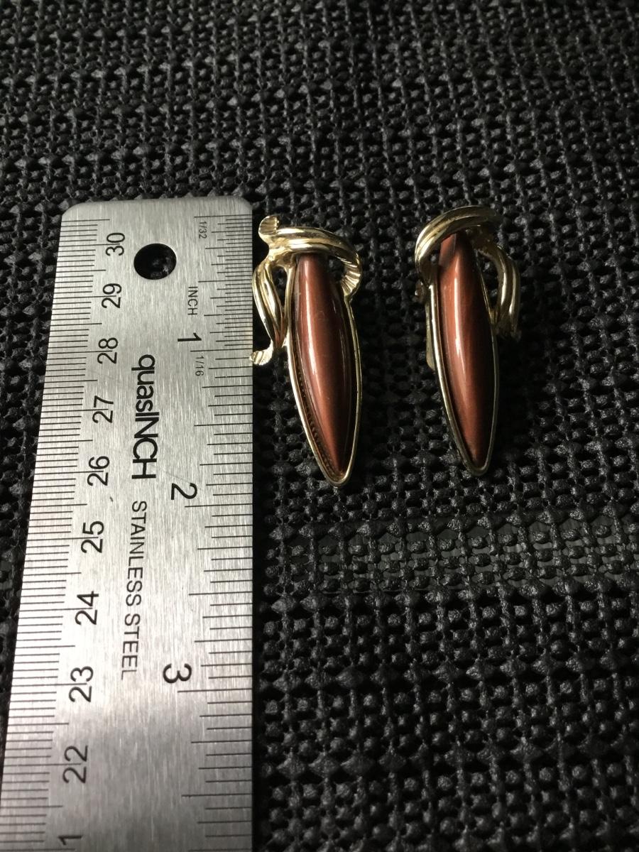 Gold tone vintage teardrop stone type center clip on earrings