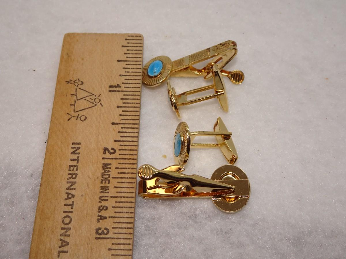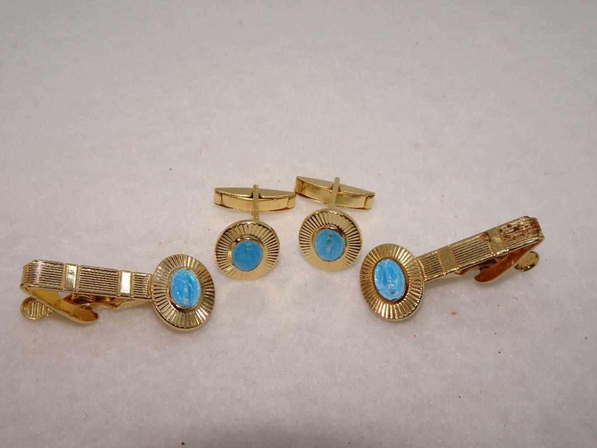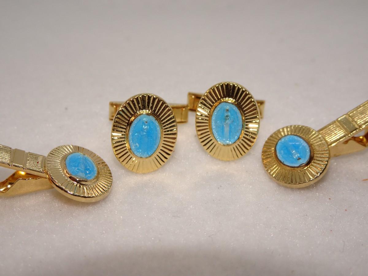 Gold Tone Virgin Mary Tie Clips (2), & Cufflinks