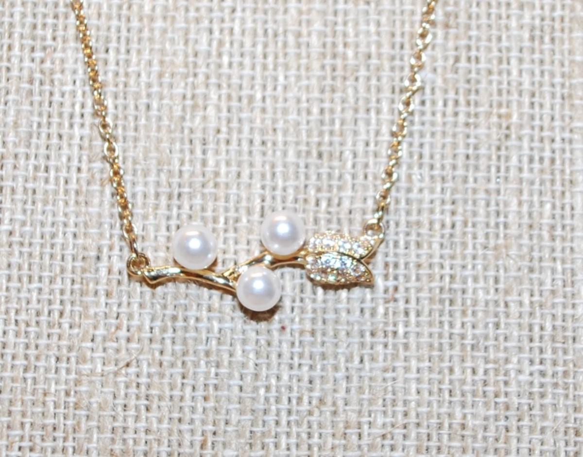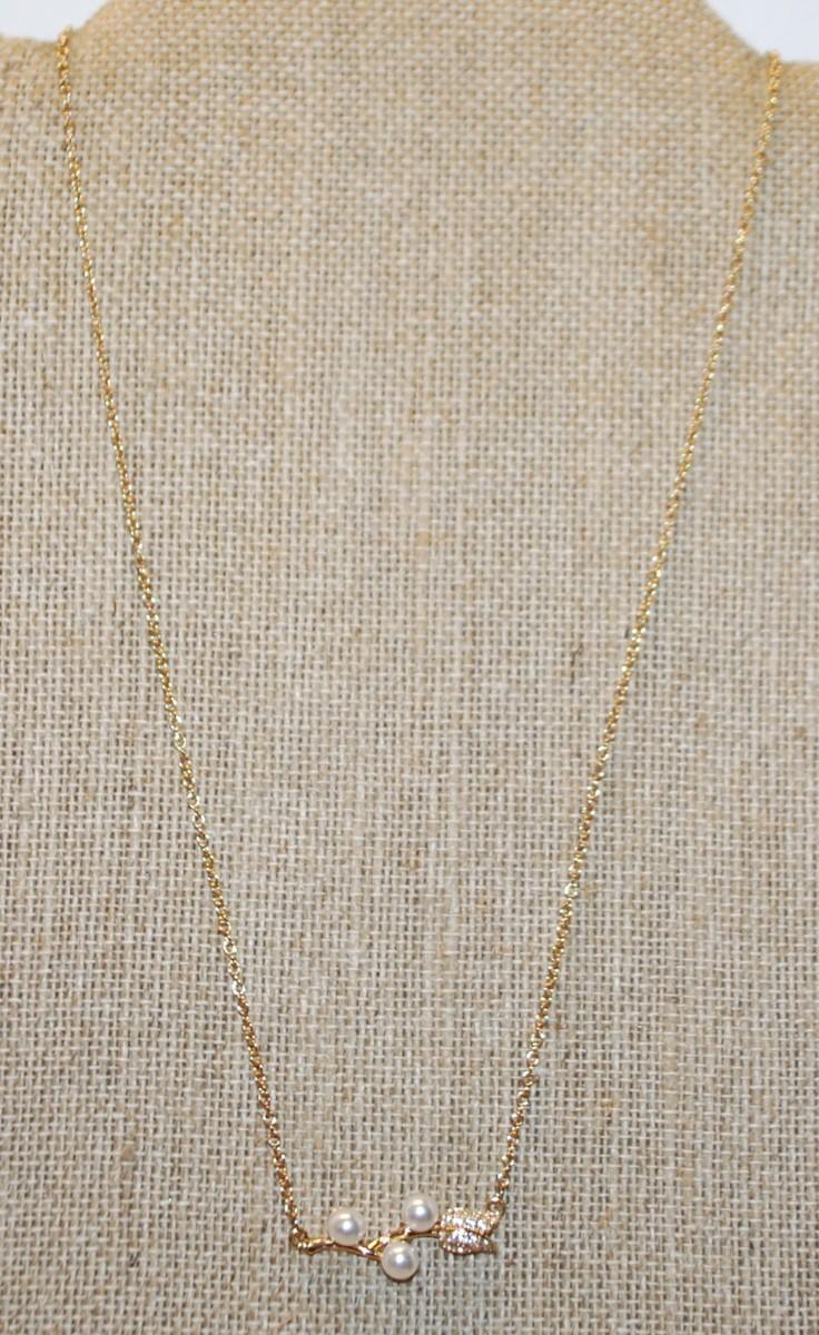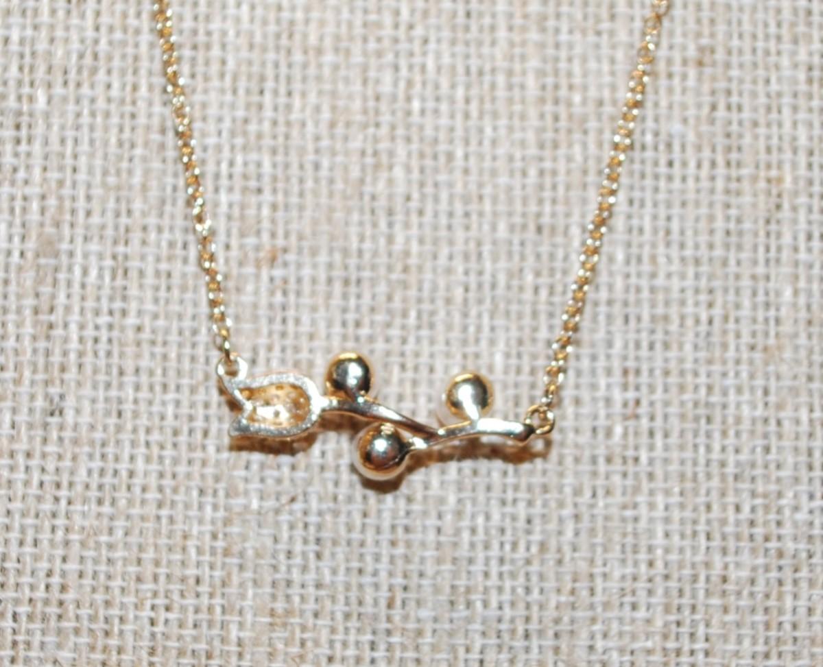 Gold Tone "White Pearls & Tulip" PENDANT (1" x ½") on a Gold Tone Necklace Chain 16" L