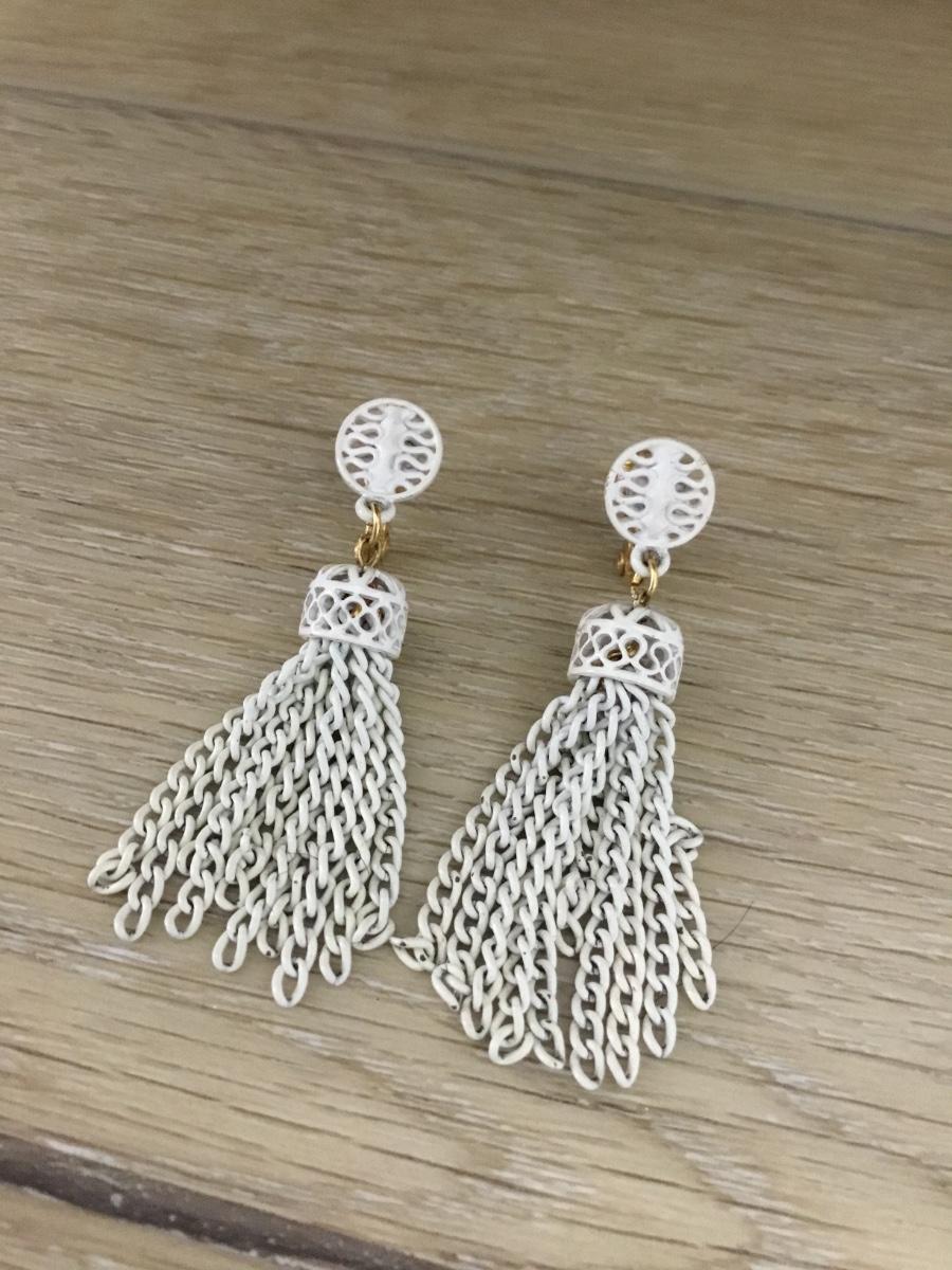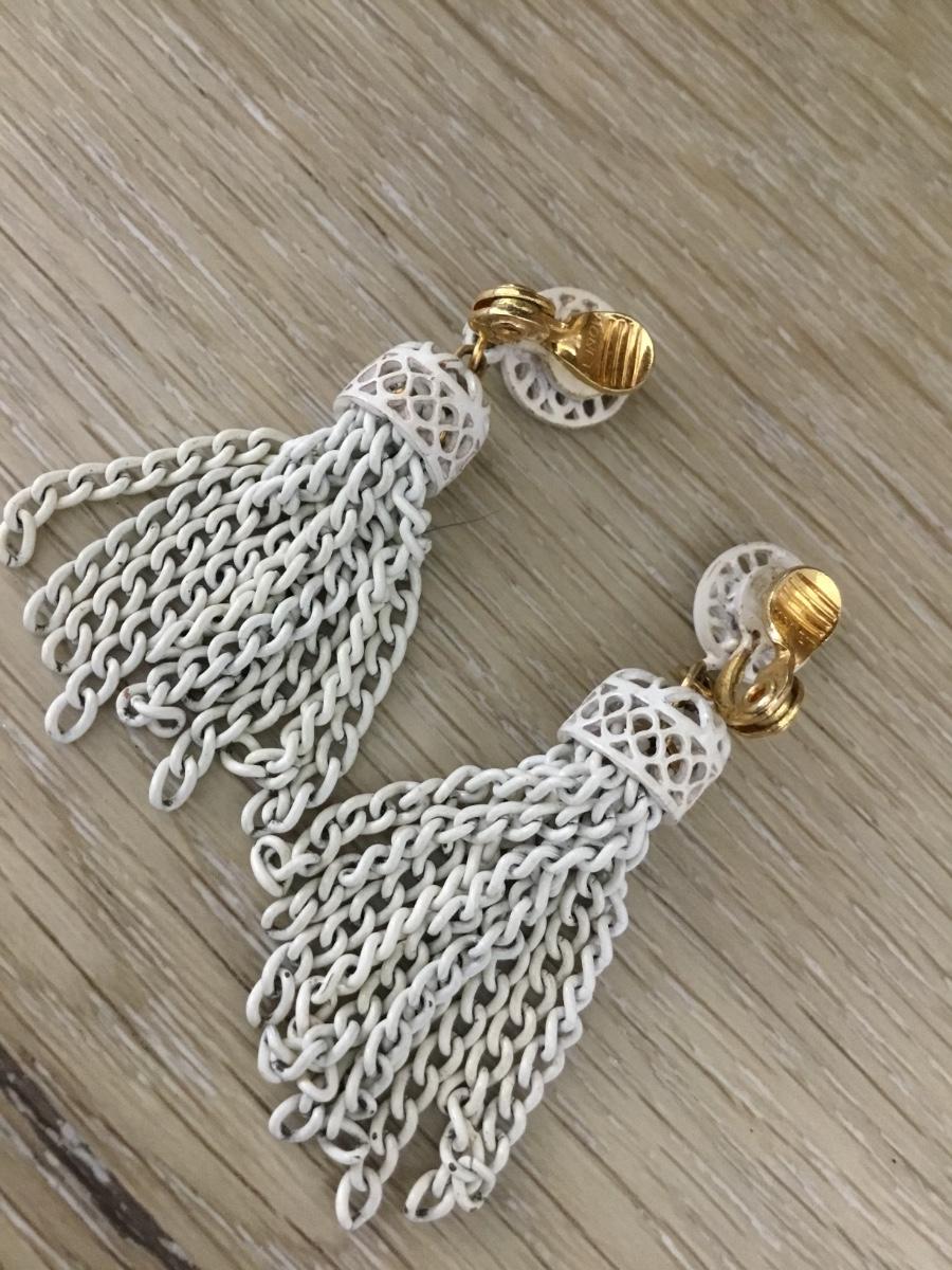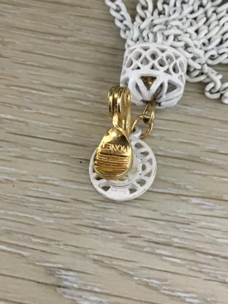 Gold tone white tassel Monet marked clip on earrings