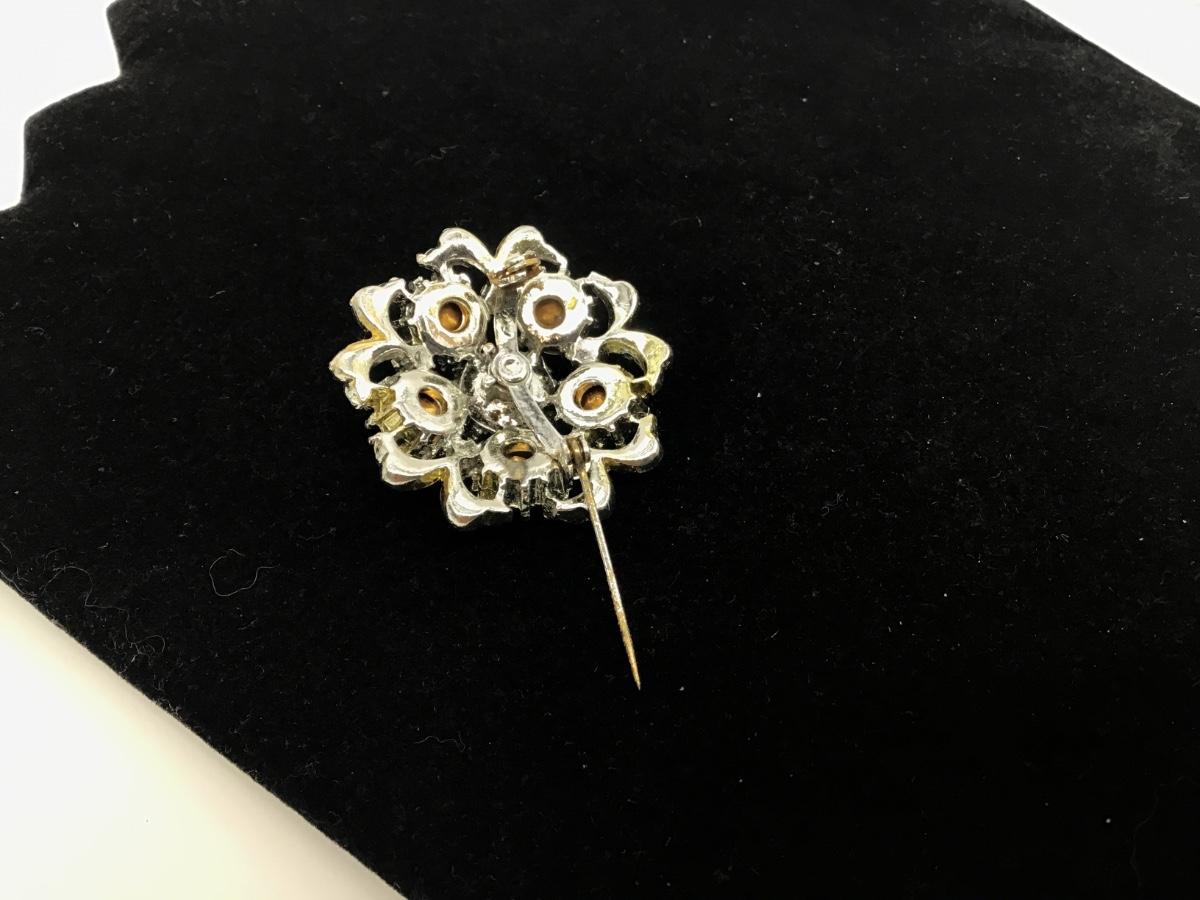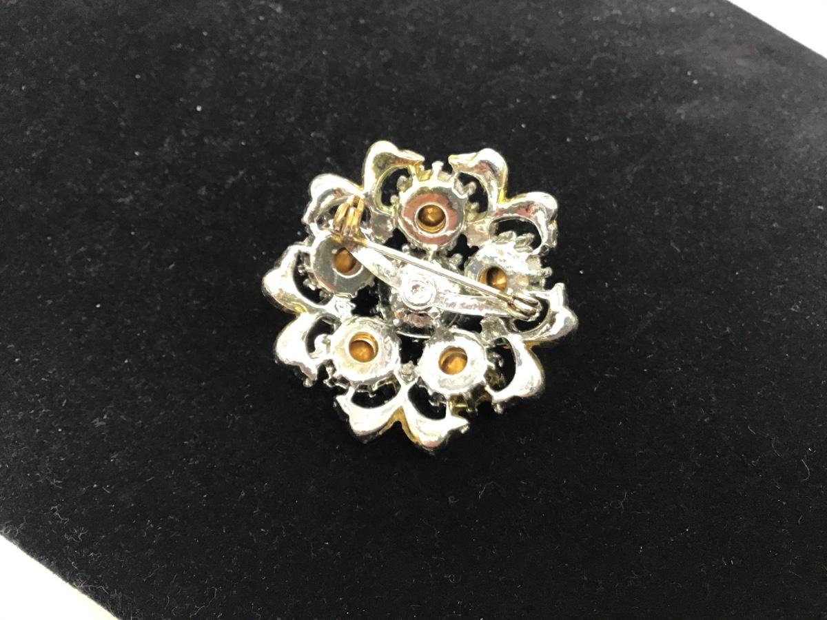Gold Tone With Silver Tone Rhinestone Vintage Brooch