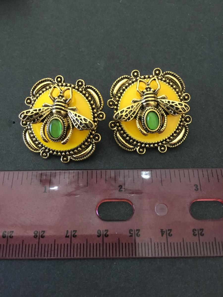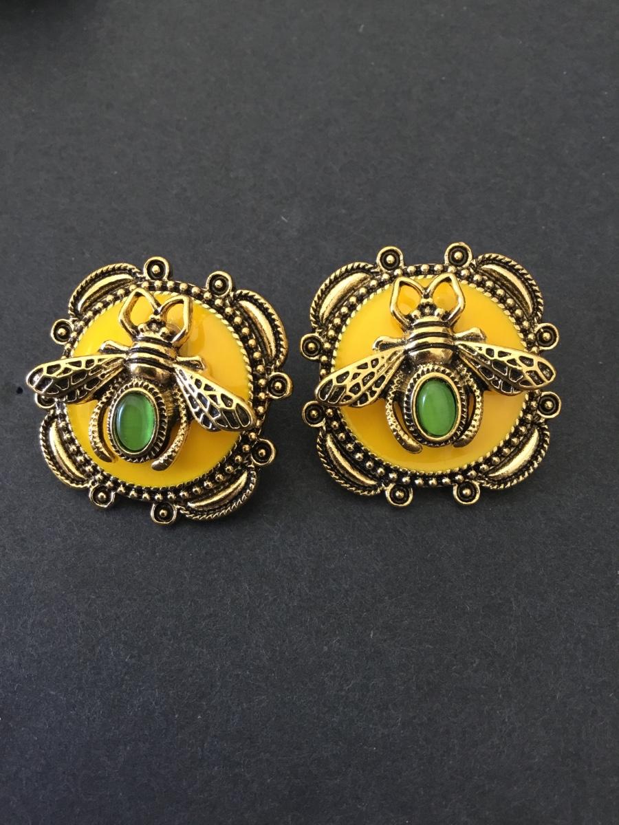 Gold tone, yellow enamel, Queen bee statement earrings
