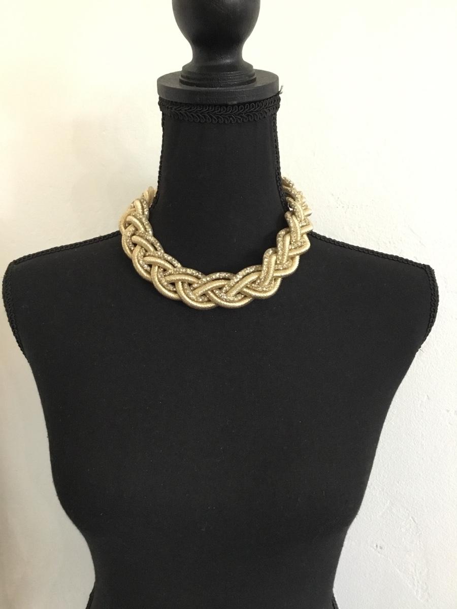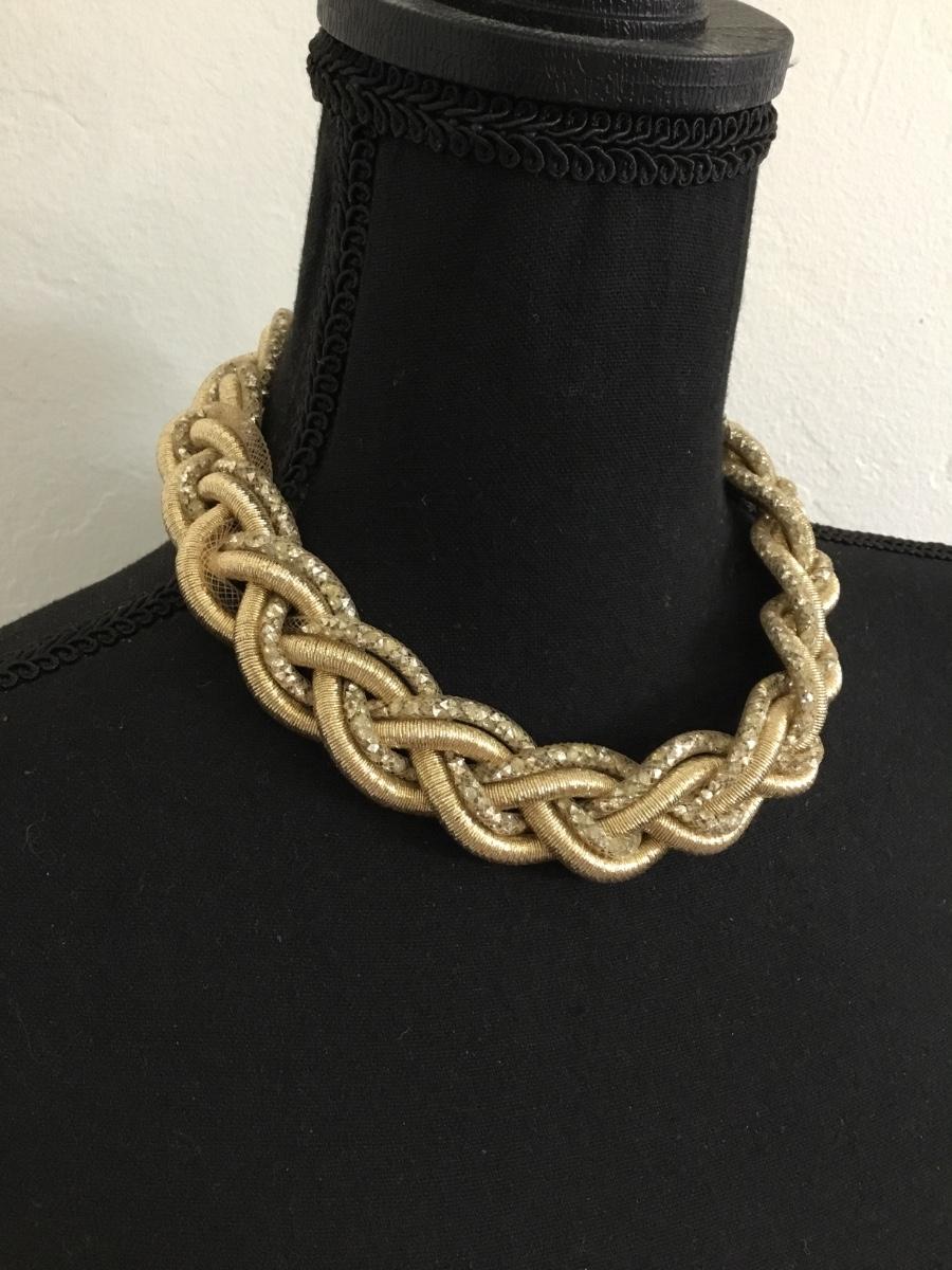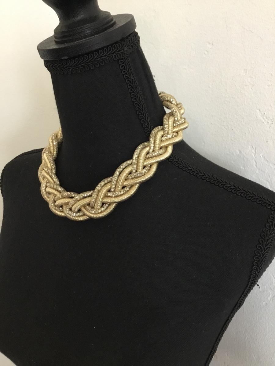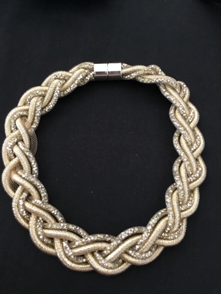 Gold , toned, braided Diamond, rhinestone, mesh, magnetic statement, necklace