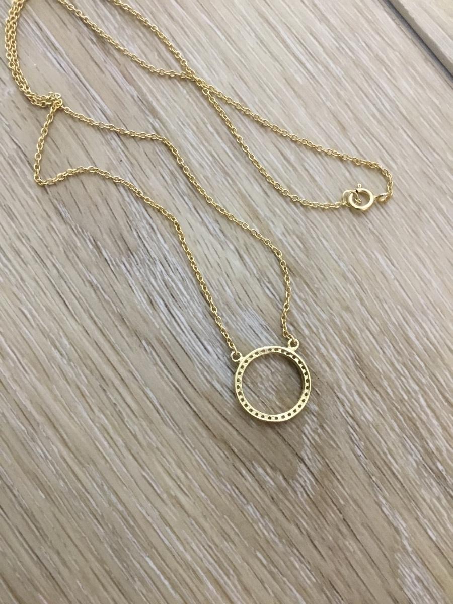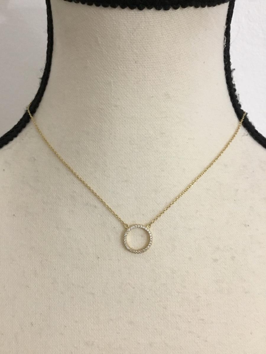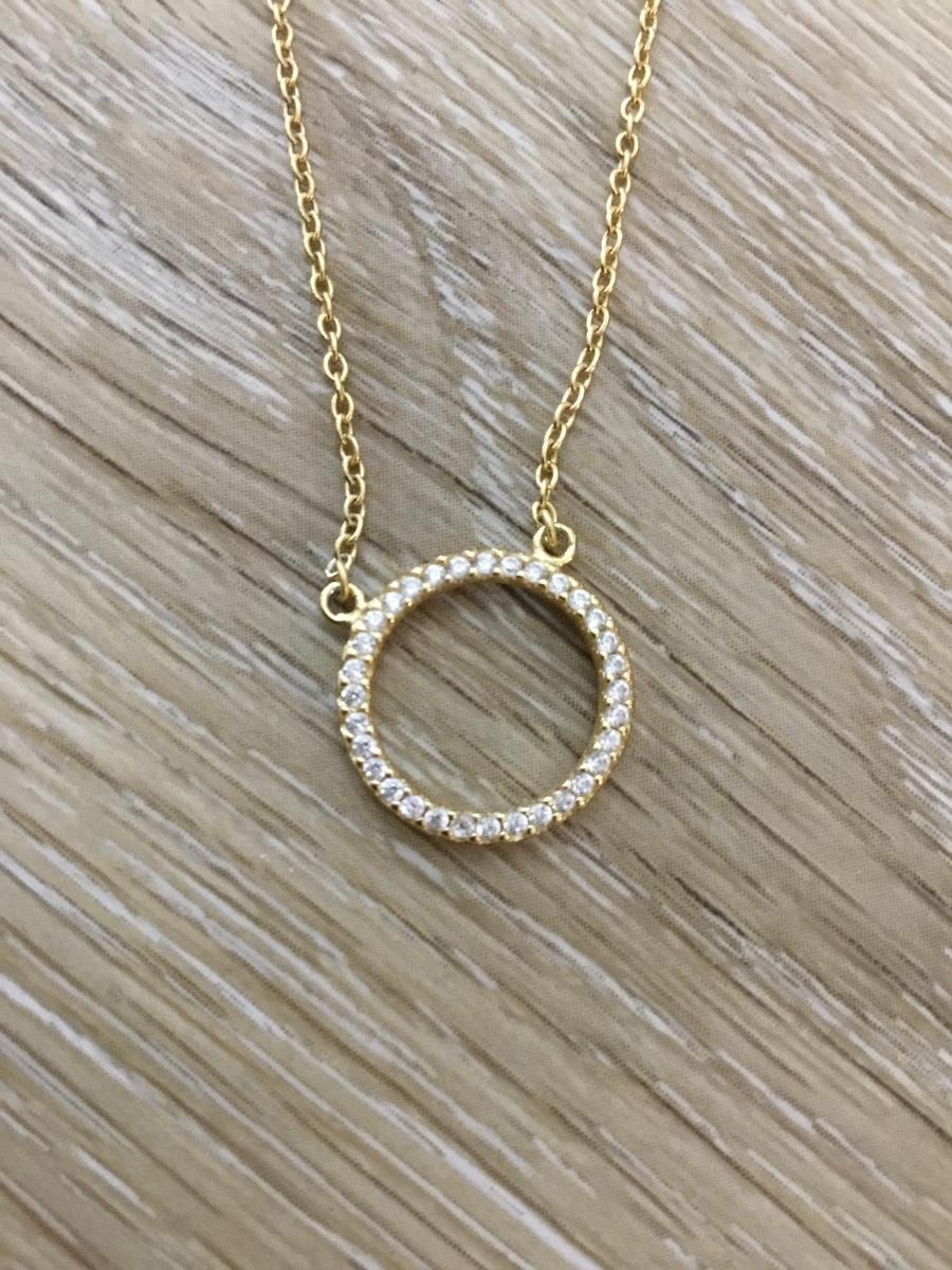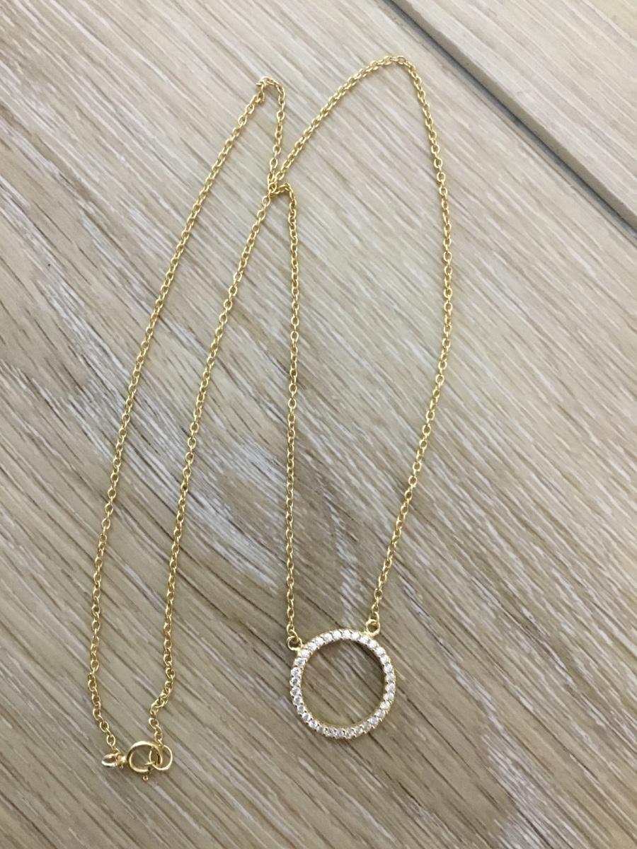 Gold toned chain, gold tone pendant with clear crystal circle pendant