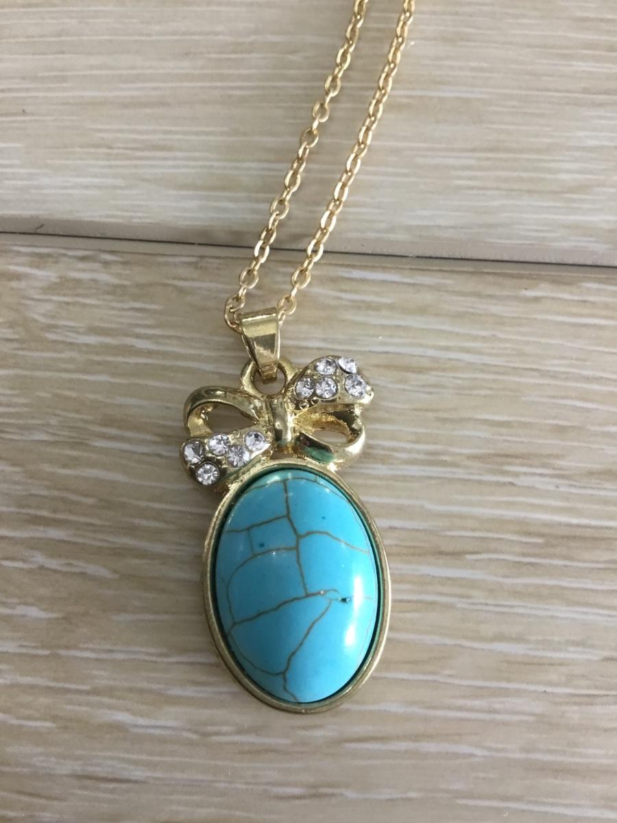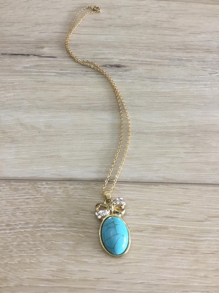 Gold toned chain with gold, toned, oval, turquoise, pendant,
