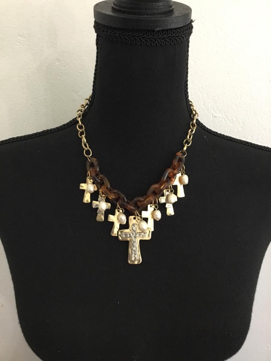 Gold toned cross necklace
