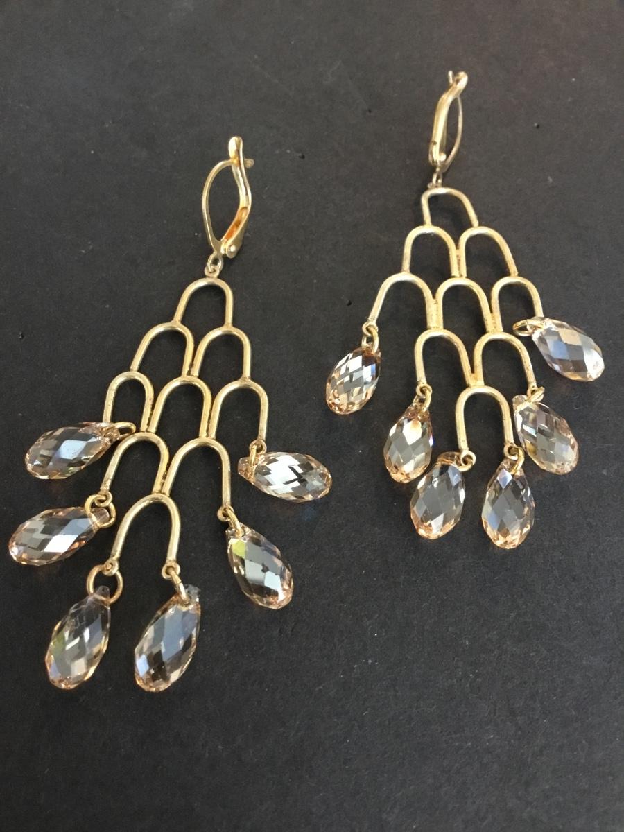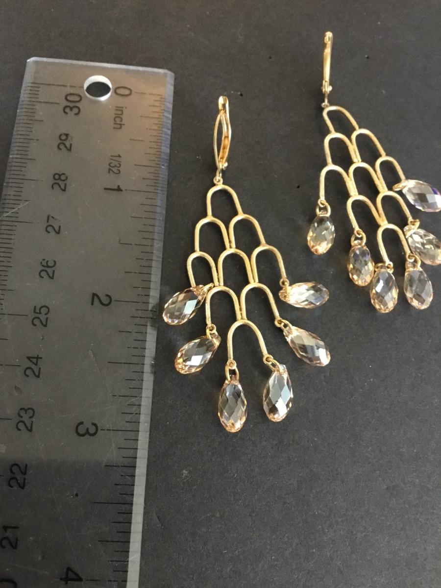 Gold toned, crystal dangle, statement earrings very beautiful