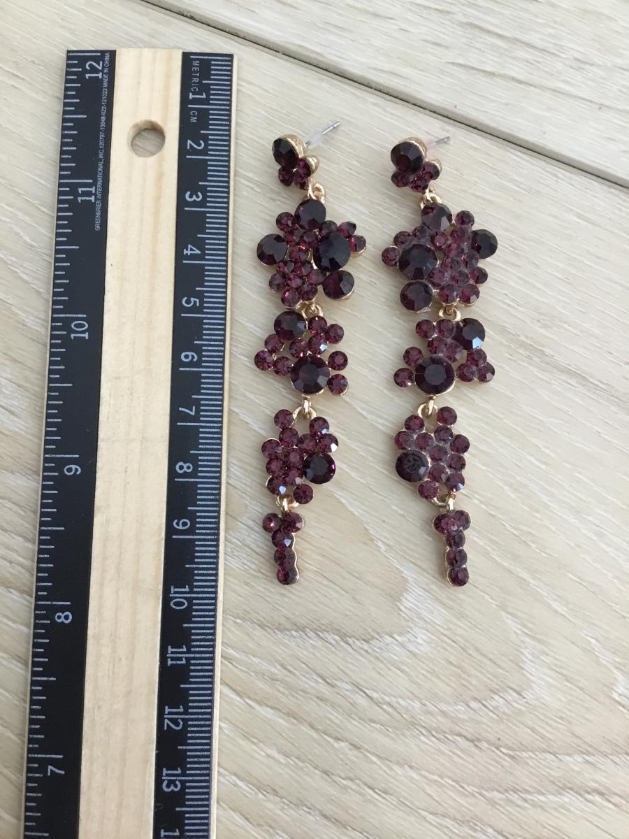 Gold toned & dark purple drop dangle statement earrings