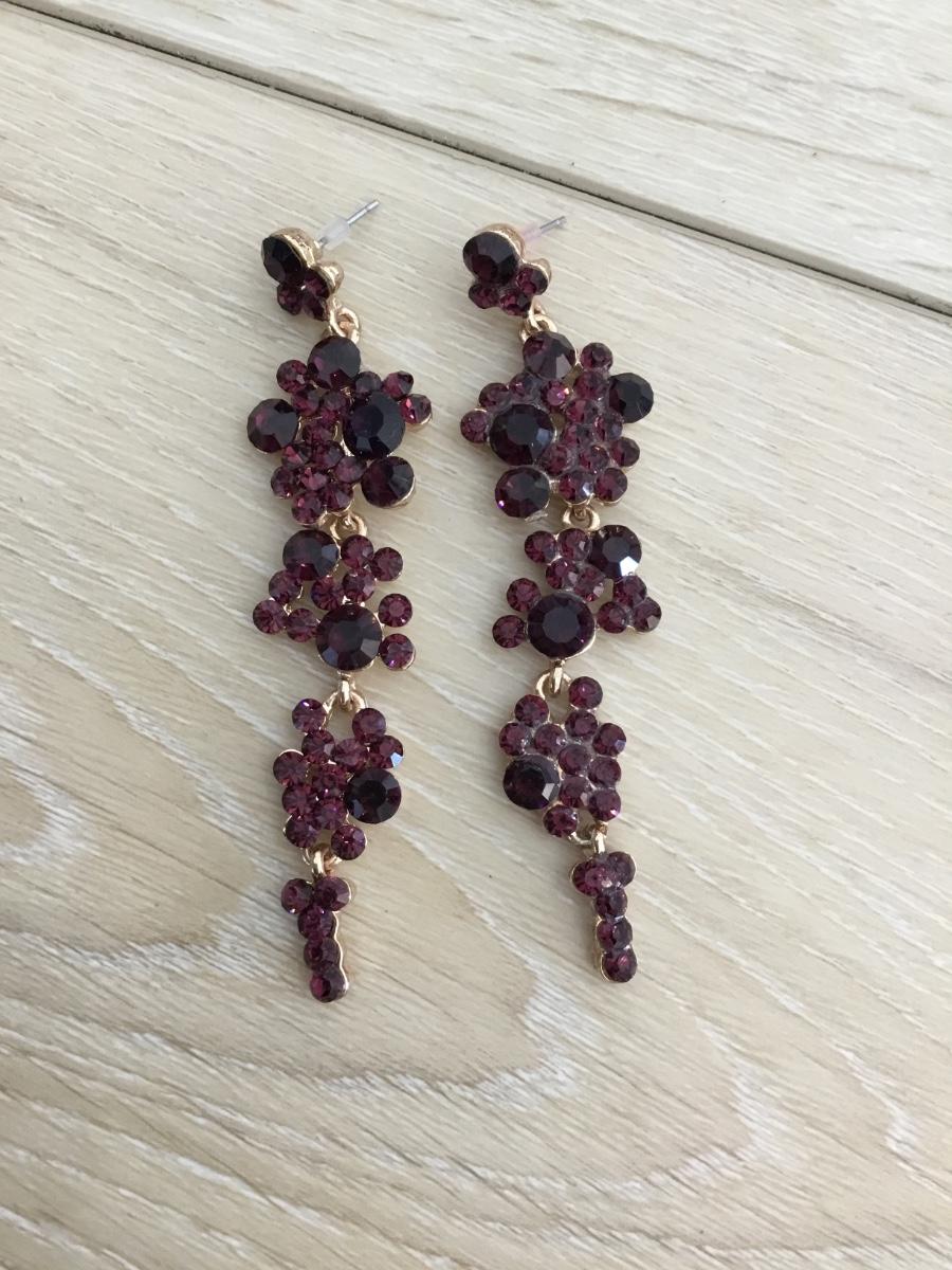 Gold toned & dark purple drop dangle statement earrings