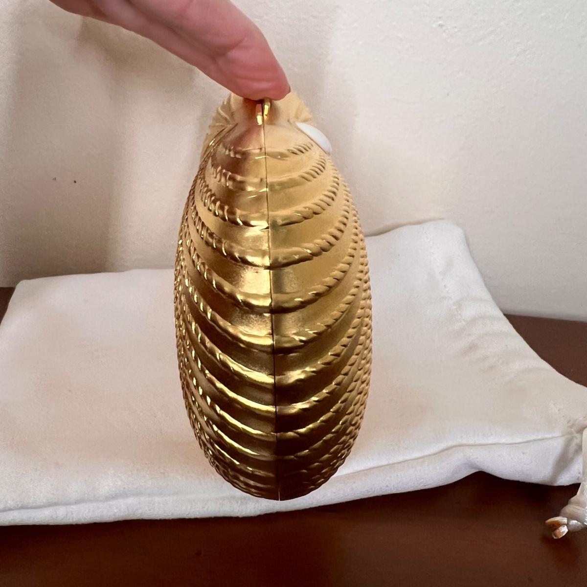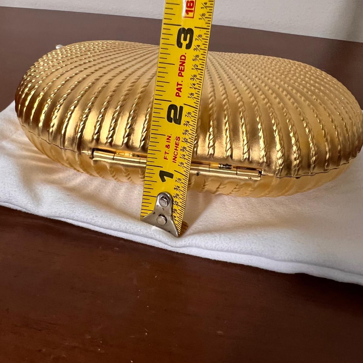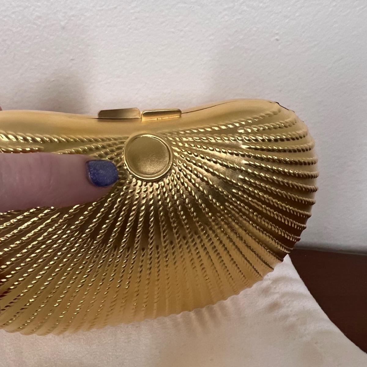 Gorgeous brushed gold Judith Leiber-esque clutch. While there is not sign of it being an authentic Judith Leiber, it is very much reminiscent of her designs.