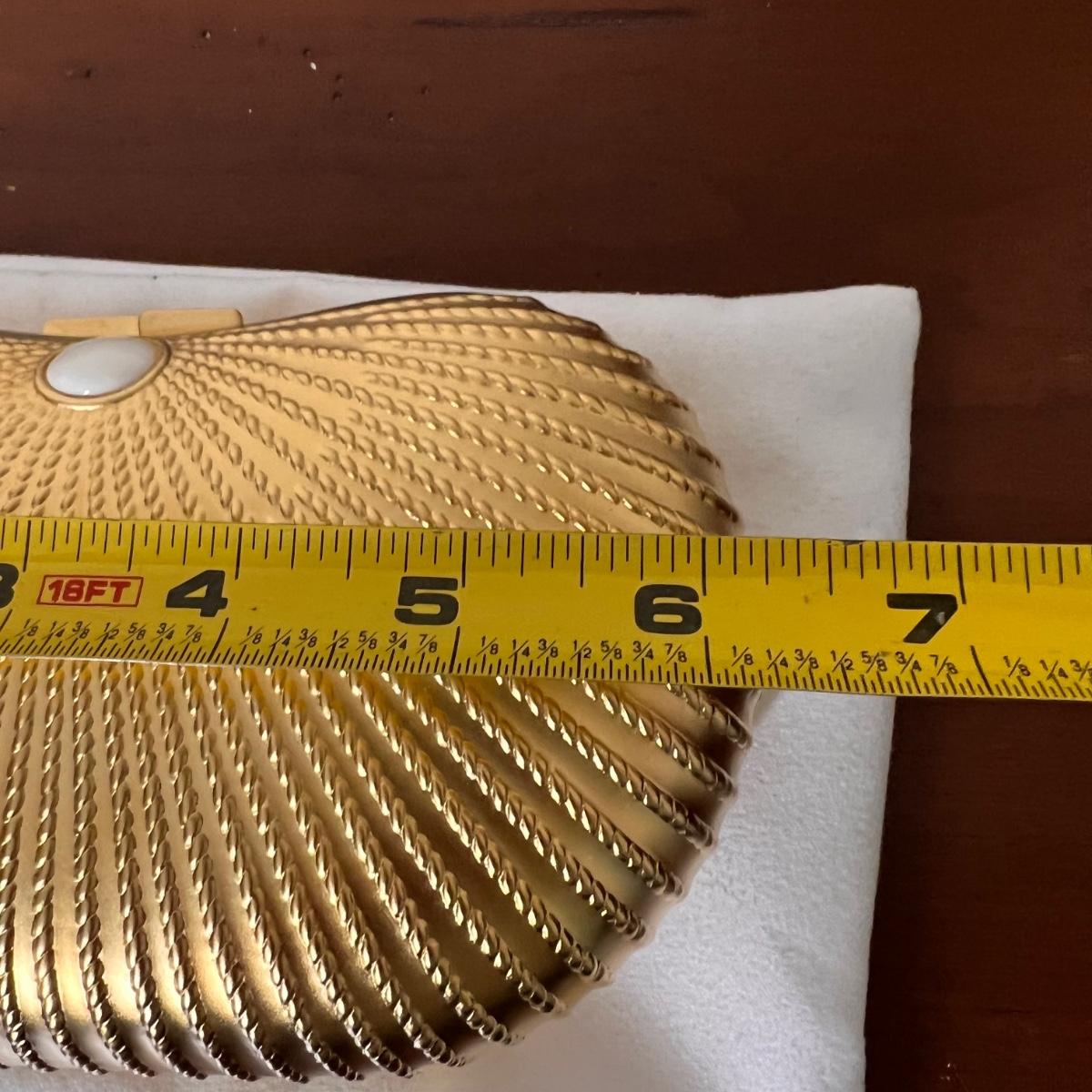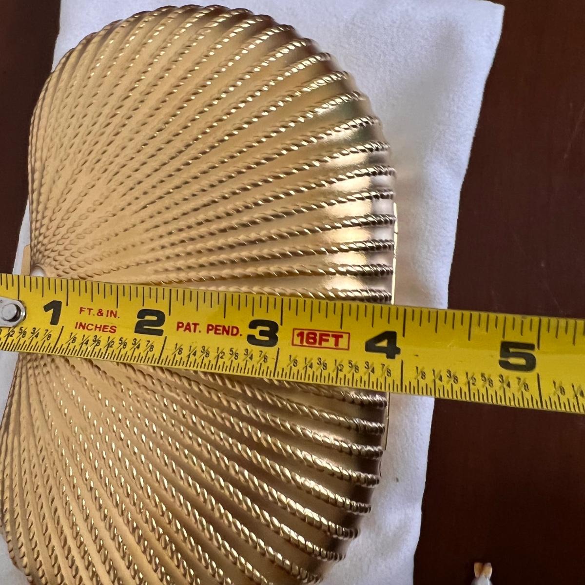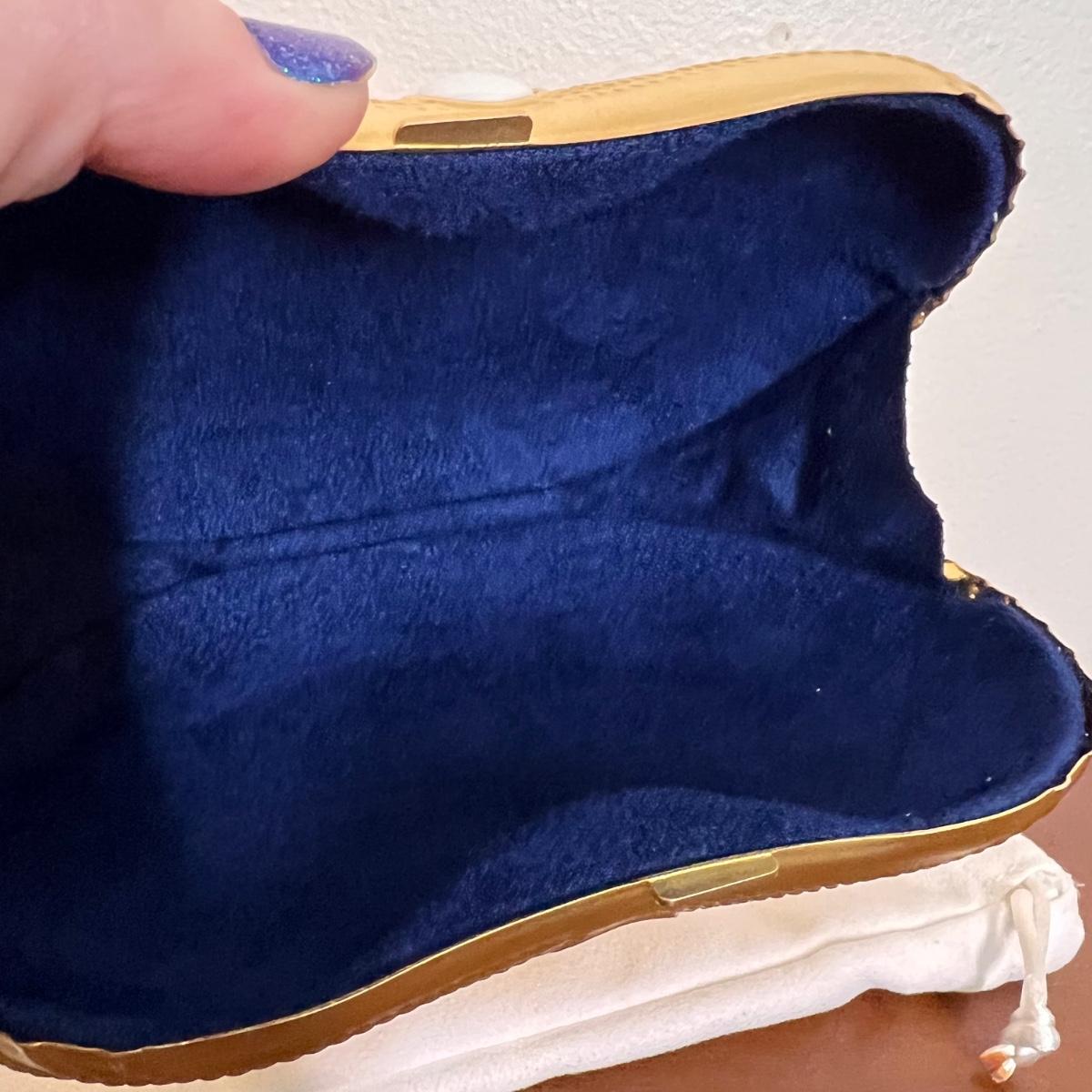 Gorgeous brushed gold Judith Leiber-esque clutch. While there is not sign of it being an authentic Judith Leiber, it is very much reminiscent of her designs.