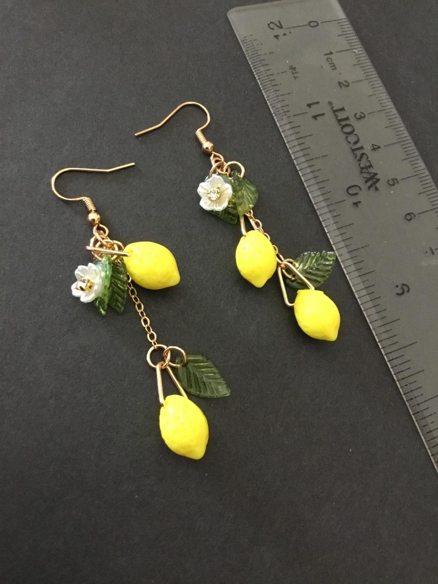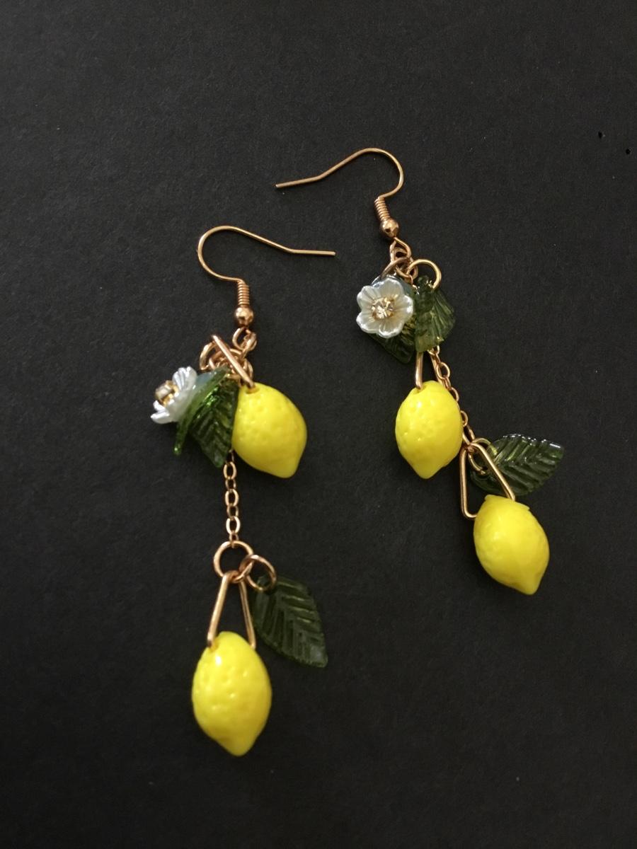 Gold, toned, lemon earrings
