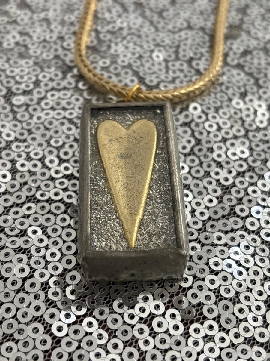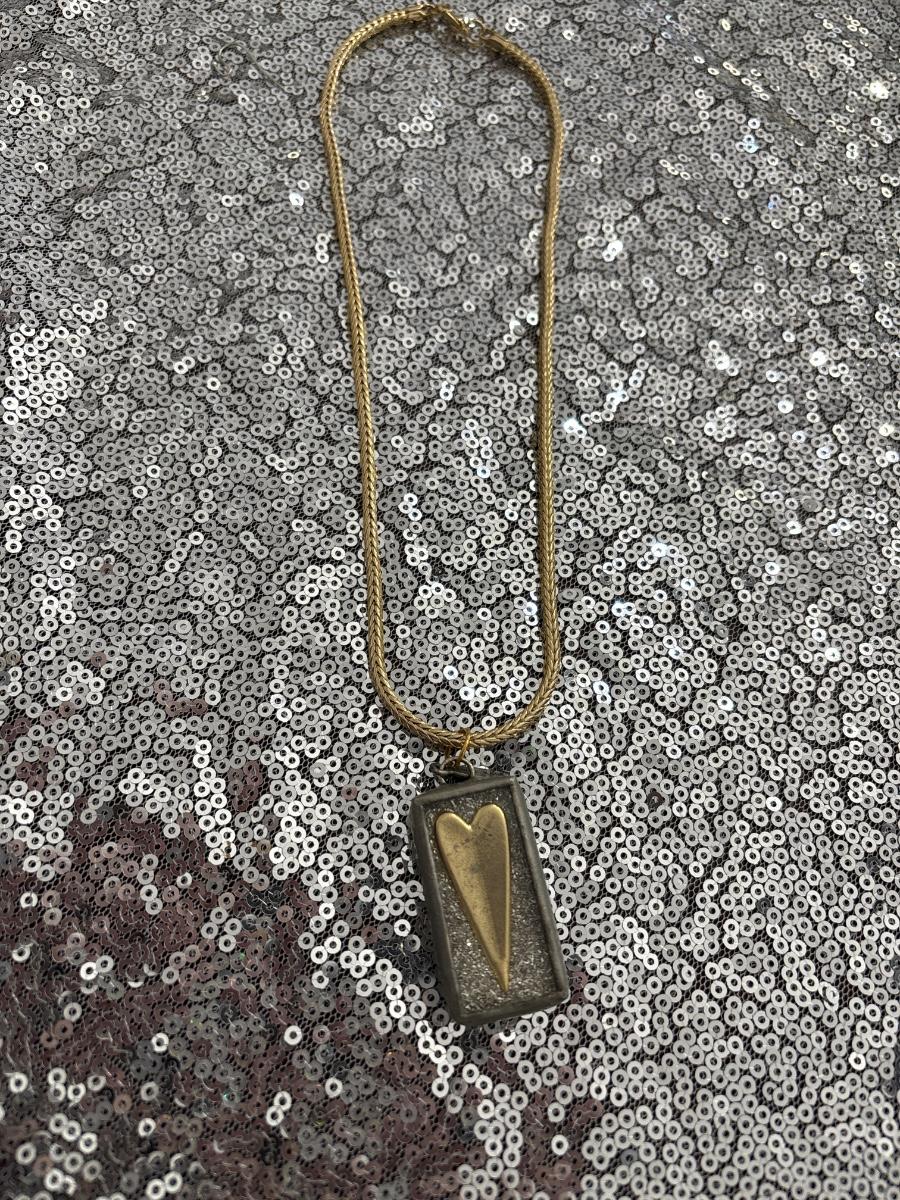 Gold toned mesh necklace with Jewel Kade heart charm two sided