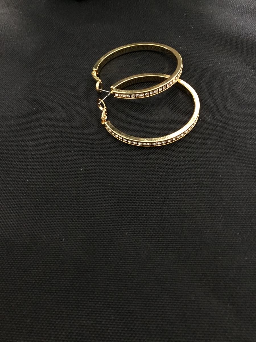 Gold, toned premier, design, diamond wrapped around hoop earrings